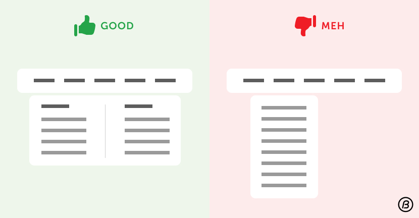 ナビゲーションバーのドロップダウンをカテゴリーで分けてユーザーが見つけたいセクションをわかりやすく表示。