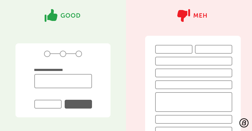 フォームを複数ページに分け、プロセスをシンプルに見せる。