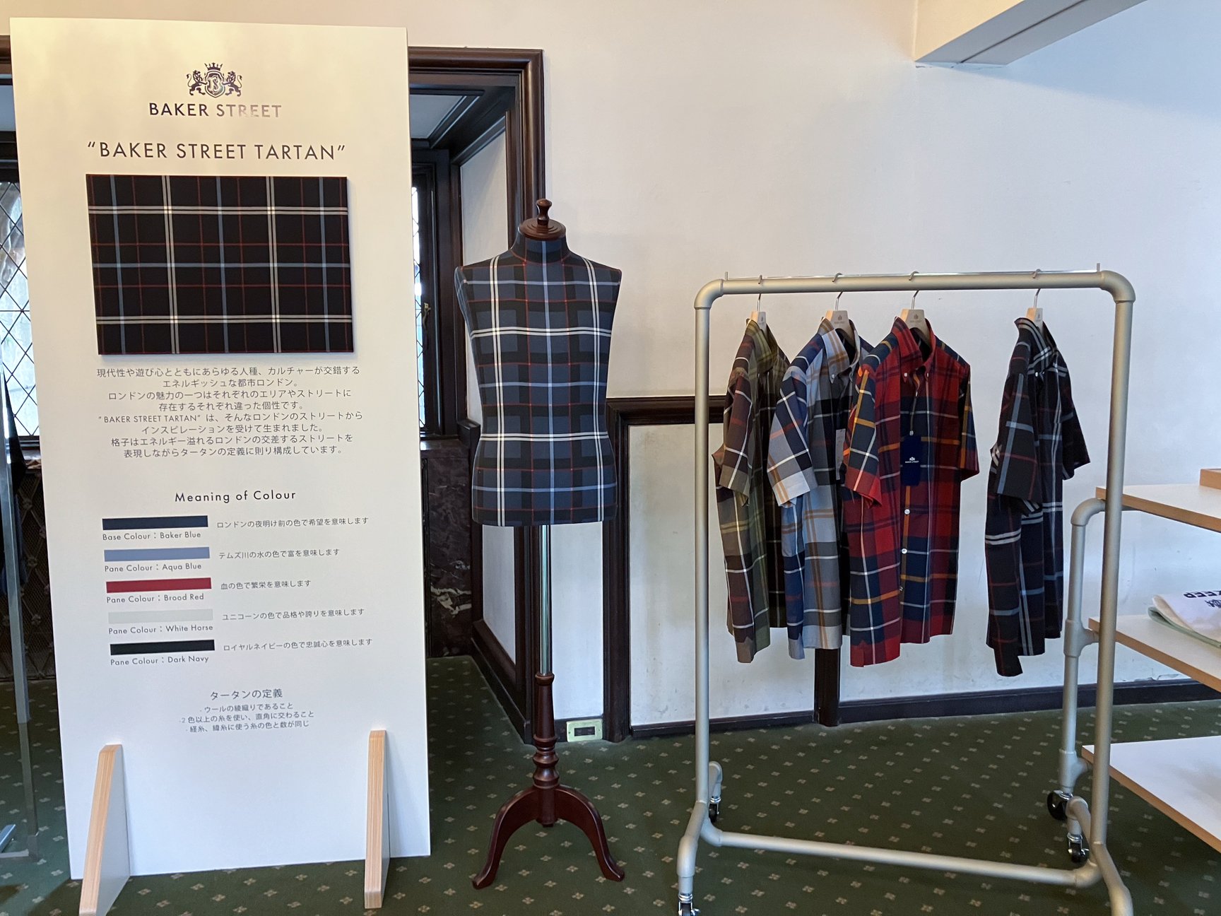 コレクションでは、ブランドの顔となるオリジナルのチェック柄「ベイカー・ストリート タータン(BAKER STREET TARTAN)」をはじめ、グレンチェックや「リバティ(LIBERTY)」プリント、ペイズリー柄など、ブリティッシュテイストを感じさせるプリントや柄などを落とし込んだアイテムを豊富に提案。フィールドジャケットの代表であるM65といったアウターやブレザー、オックスフォードシャツ、ポロシャツ、トレーナー、チノパンツなど、英国スタイルを作る上で不可欠な定番品を幅広くラインナップする。