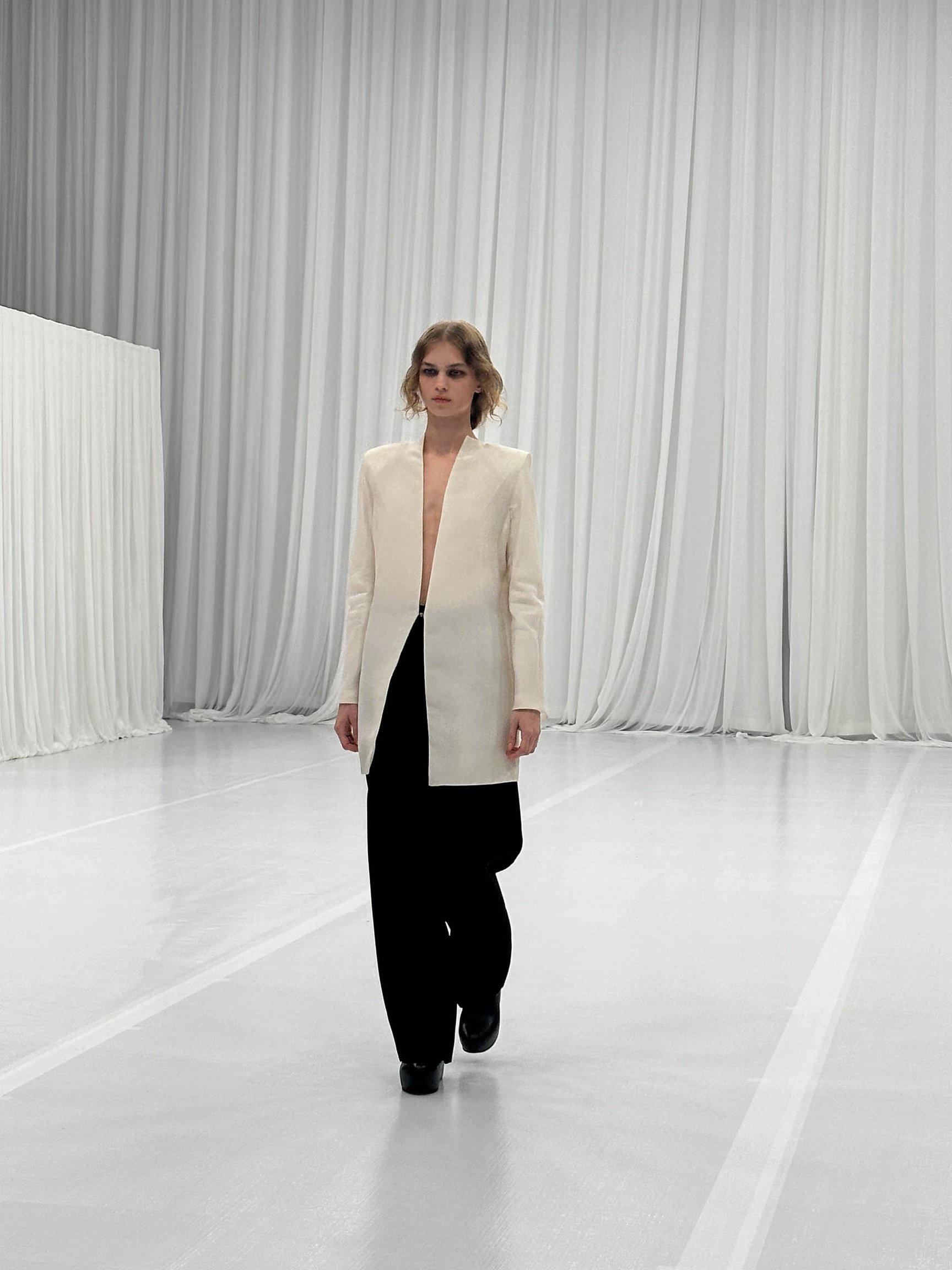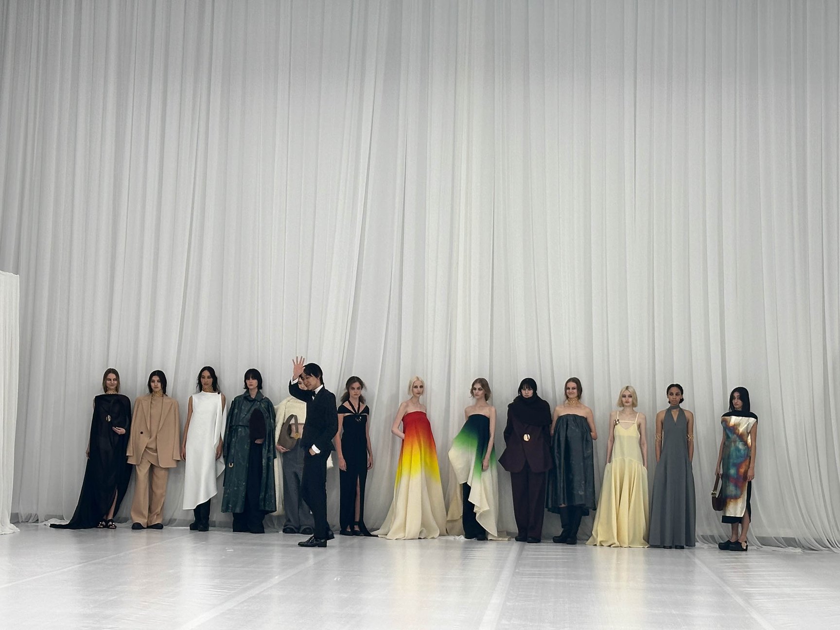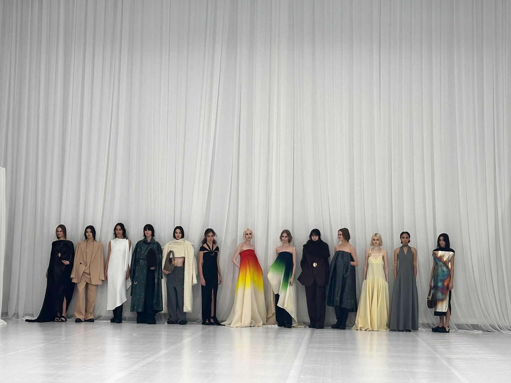 村田は授賞式後に行われたプレゼンテーションで、これまでに発表したショーの“ベスト版”とも位置付けるランウェイショーを披露。「ブランドを運営していく上で最も大きな原動力になっているのは、子どもの頃に見た憧れです」と村田。ファーストルックには20歳の頃に制作した、現在のクリエイションの礎とも言える1着をセレクトし、音楽は学生時代に見たクラシカルなファッションショーの楽曲をイメージして表現したという。