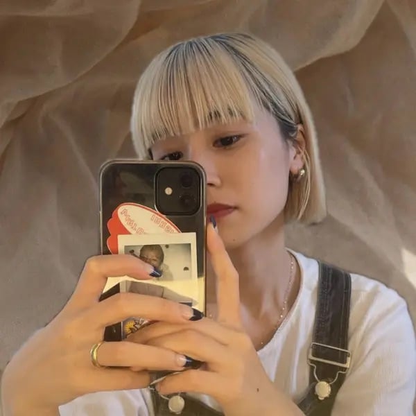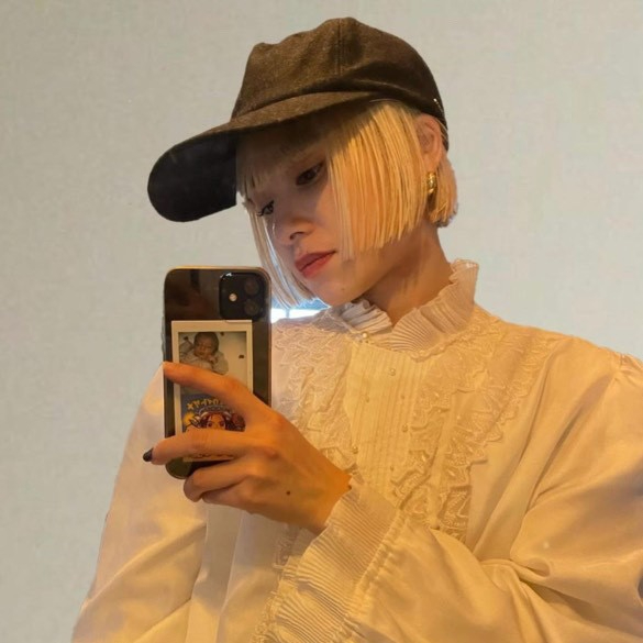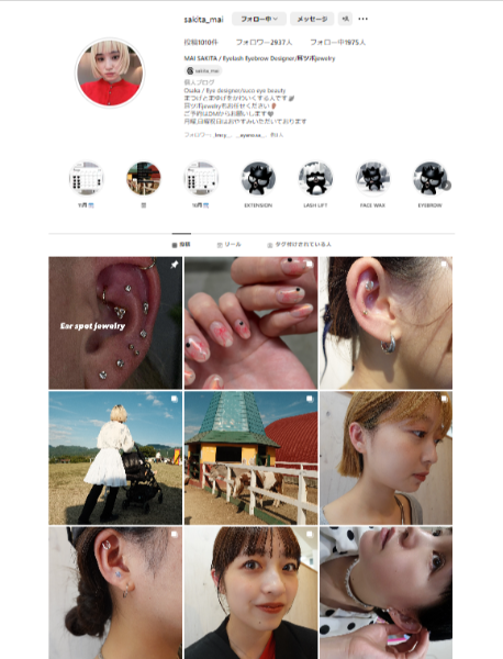 大阪でアイブロウ、まつ毛だけでなく、ツボを刺激しつつファッション感覚で楽しめる耳つぼジュエリーの施術も行っている。レイヤードコーデやジュエリーを取り入れたひと癖ある上級者ファッションも注目を集める存在。ハイトーンカラーのヘアスタイルがトレードマーク。