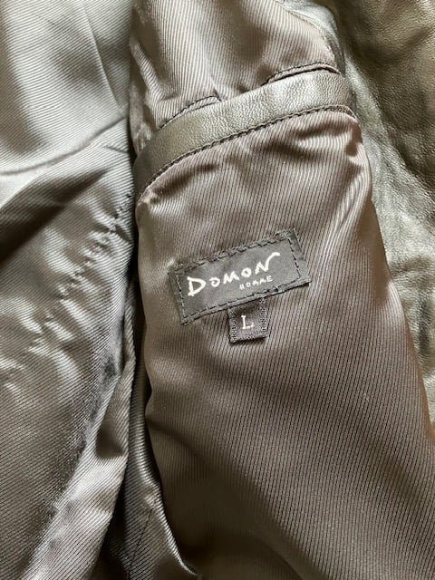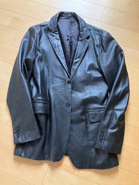 当方も若い頃にイキって、今は亡きブランド「ドモン」の羊革のテイラードジャケットをバーゲンで買って今でも残っている。たしか2000年ごろだったと記憶しているが、当時のマストレンドで細身ジャケットである。定価が39800円くらいだったのが半額の19000円に値下がりしたのでなけなしの金を集めて買った。