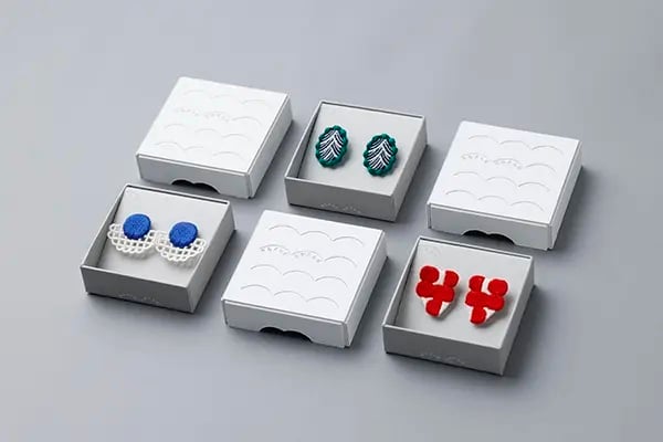 デザイナー・ヤマサキチヨさんと刺繍職人・ウラアキヒコさんのデザインユニットに、刺繍ファクトリーの加工技術が加わり、個性的で身につける度にわくわくするピアスやイヤリングがラインナップします。
