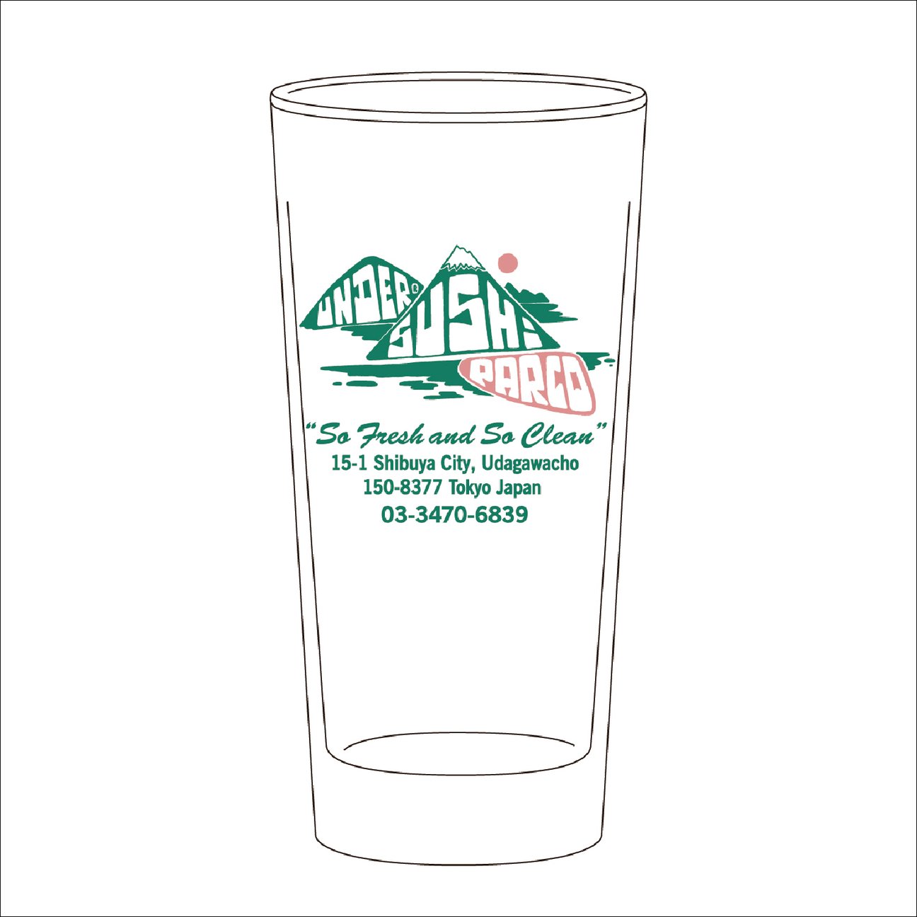 同ポップアップストアのテーマは、小さなスペースでさっと食べてさっと出る「立ち喰い寿司」。ネタをつまみながら一杯引っかけて帰る、そんな立ち喰い寿司店ならではの楽しさを表現した限定アイテムを発売する。商品は、Alexis RossのアートワークがデザインされたTシャツ(8800円)やスウェット(1万7600円)のほか、湯飲み、ビールグラス、灰皿(各2000円)などの雑貨もラインナップする。
