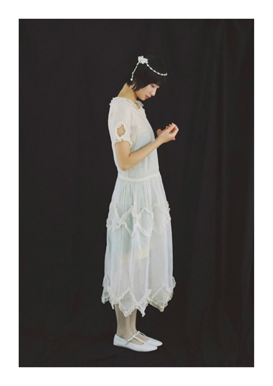 少女が持つ儚さと、意志の強さを感じさせるようなヘアメイクを意識した6ルックにまとめ、00sから20s頃のアンティークをメインにスタイリングすることで、少女性をリアルに落とし込んでいます。