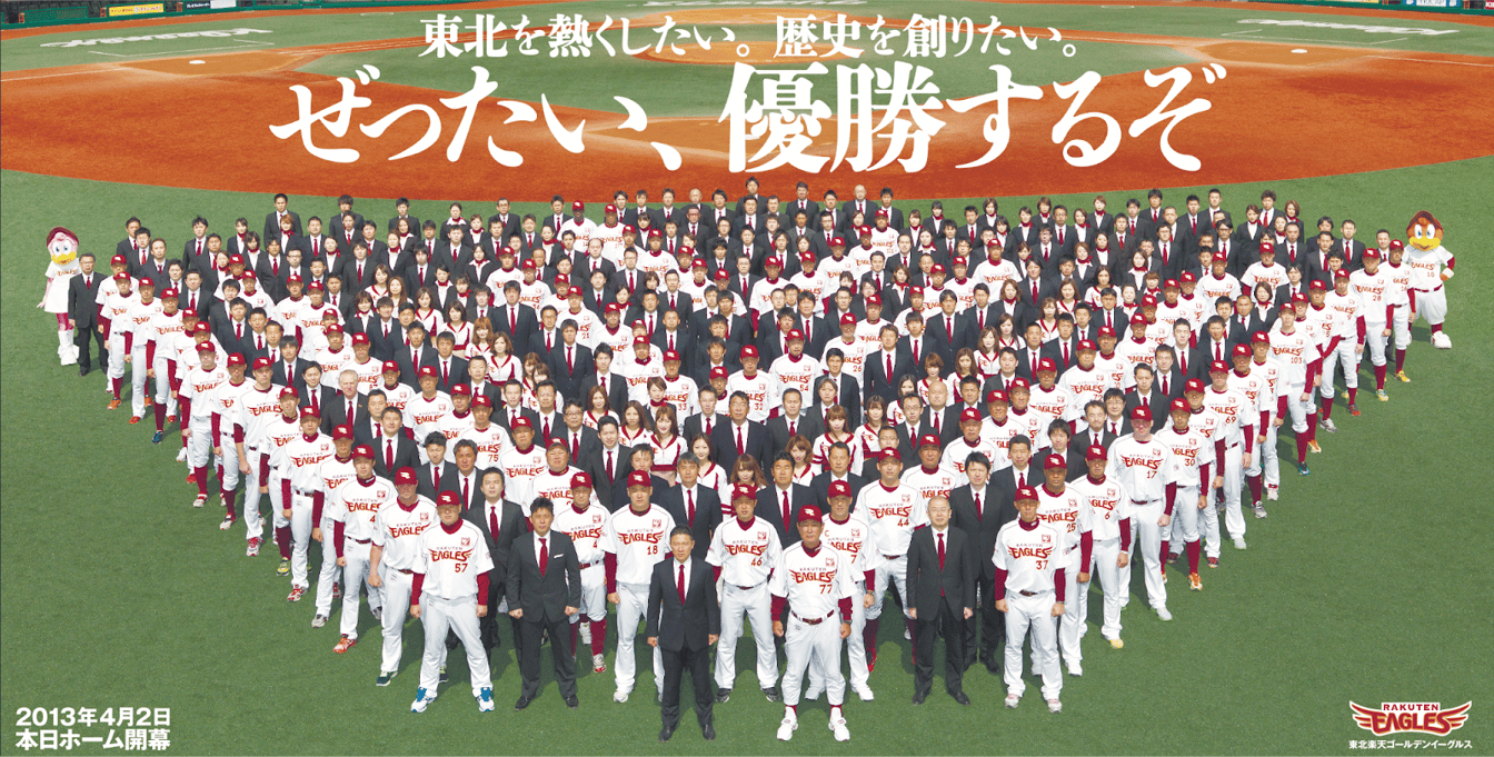 2011年の東日本大震災以降、「がんばろう東北」というスローガンのもと、被災地と共に歩んできました。そして、2013年には球団創設9年目にして初の日本一を達成。チームは東北の皆さまに勇気と感動を届けてくれました。