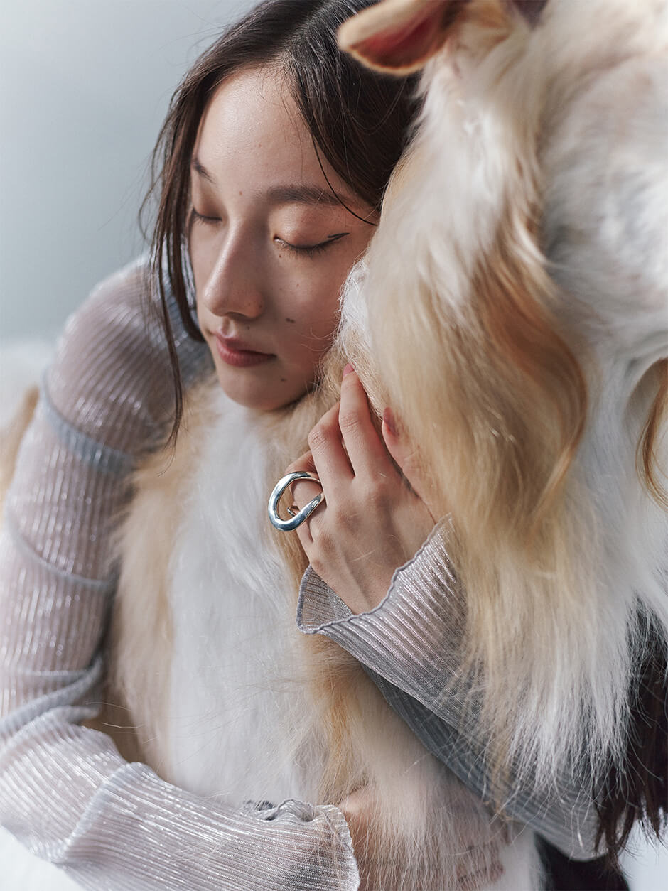 top by HONEY MI HONEY, scarf by AMUBLATT, ring by AGU