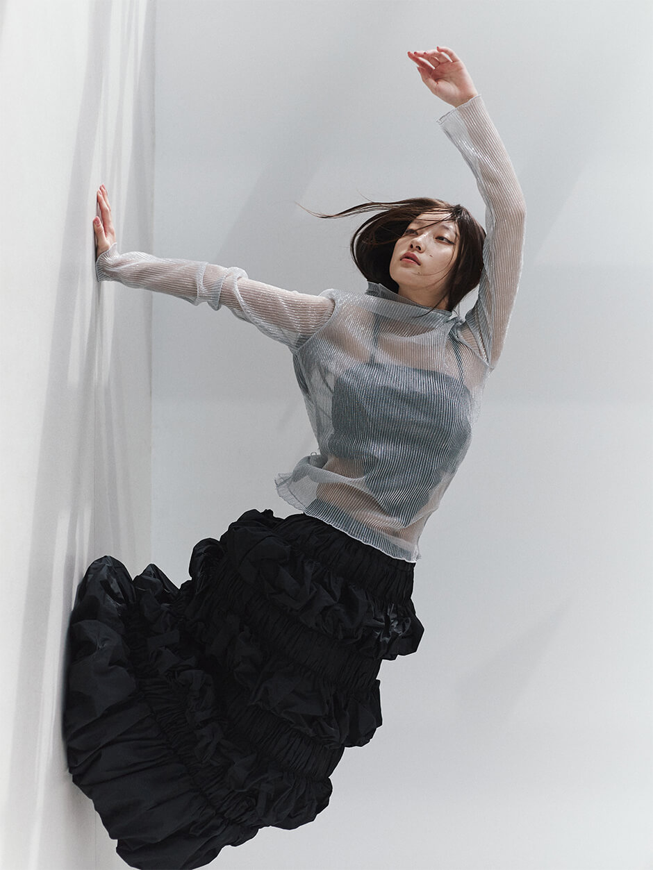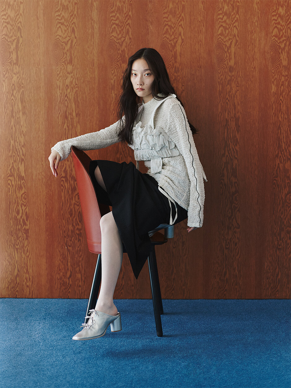 knit top by HONEY MI HONEY, top and skirt by AMUBLATT, shoes stylist’s own