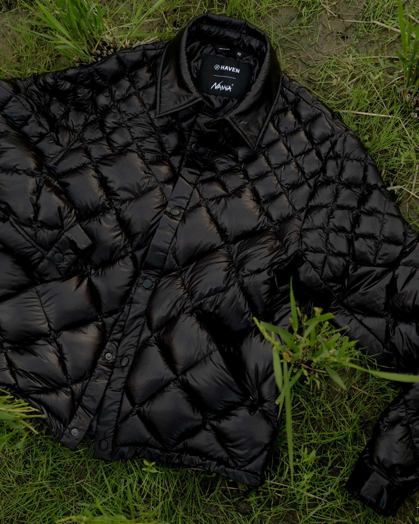 同コラボでは、「HAVEN / Nanga Skyline Shirt」と「HAVEN / Nanga Skyline Jacket」の2型を展開。Skyline Shirtは、伝統的なアウトドアウェアの実用性と現代的なデザインを融合したアイテムで、軽量かつ耐久性に優れる860フィルパワーのポーランド産グースダウンを採用している。襟元にはシンセティック・フィルを用いたほか、ボディには大きさが異なるダイヤモンド型キルトをグラデーションでデザインした。