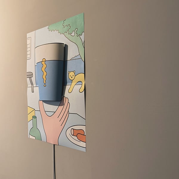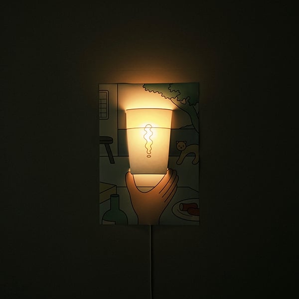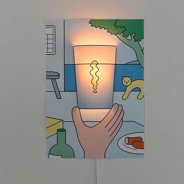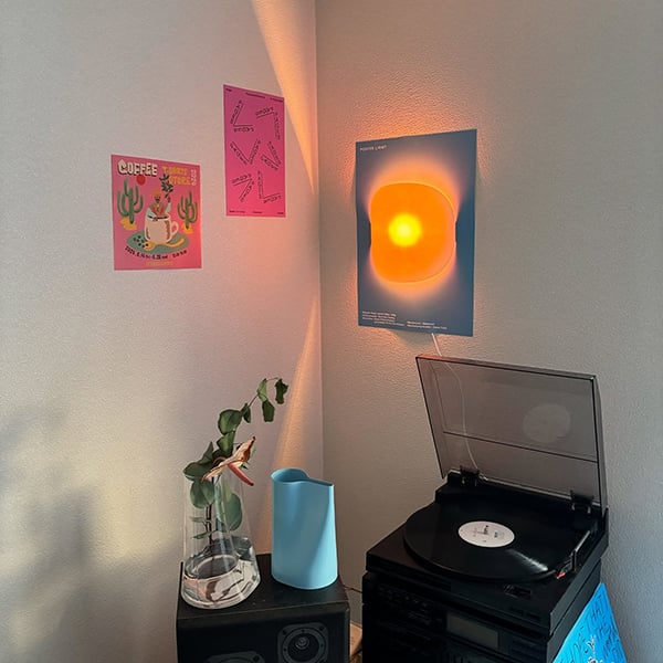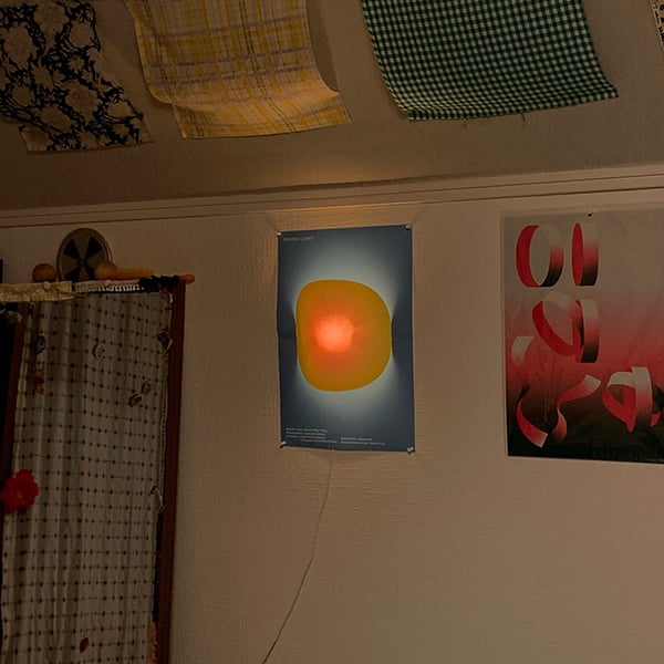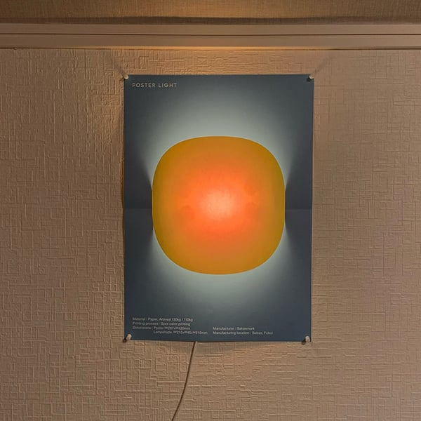 POSTER LIGHTのアイテムは、一見するとただのポスターのよう。しかし、スイッチを押すとパッと明るくなるしっかりとした照明なんです。