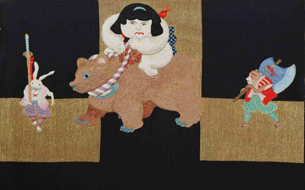 帯(部分)[熊、猿、兎、金太郎] 日本 1935年頃