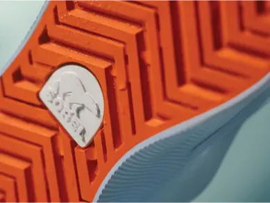 ブランド独自のラバーコンパウンドと水を排出するラグによって、濡れた地面でも滑りにくいそう。