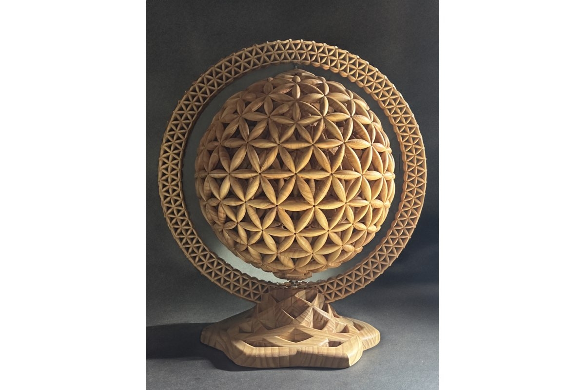 万物の法則性そのものを現わした神聖幾何学(フラワーオブライフ)の立体作品を展示し、創ること、動く事で導かれる立体構造の知られざるエネルギーの法則に触れる本展。「自分という扉の向うに。」をテーマに、「外(現れ)」だけではなく「中(構造・法則)」を現わしたアートの数々を披露する。