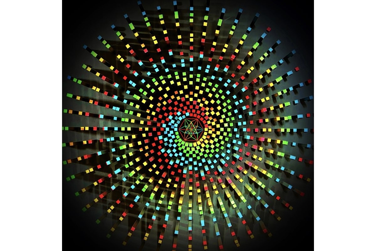 本展は、宇宙や地球、私たちの身体や魂まで、目に見えるものも見えないものも同じ構造で成り立つことを再認識させてくれる。意識を「外」に向ける風潮によって、内側の目に見えないエネルギーの法則が忘れ去られてしまっている昨今。”すべては中心から始まる”との本来の在り方を、神聖幾何学を通して表現していく。