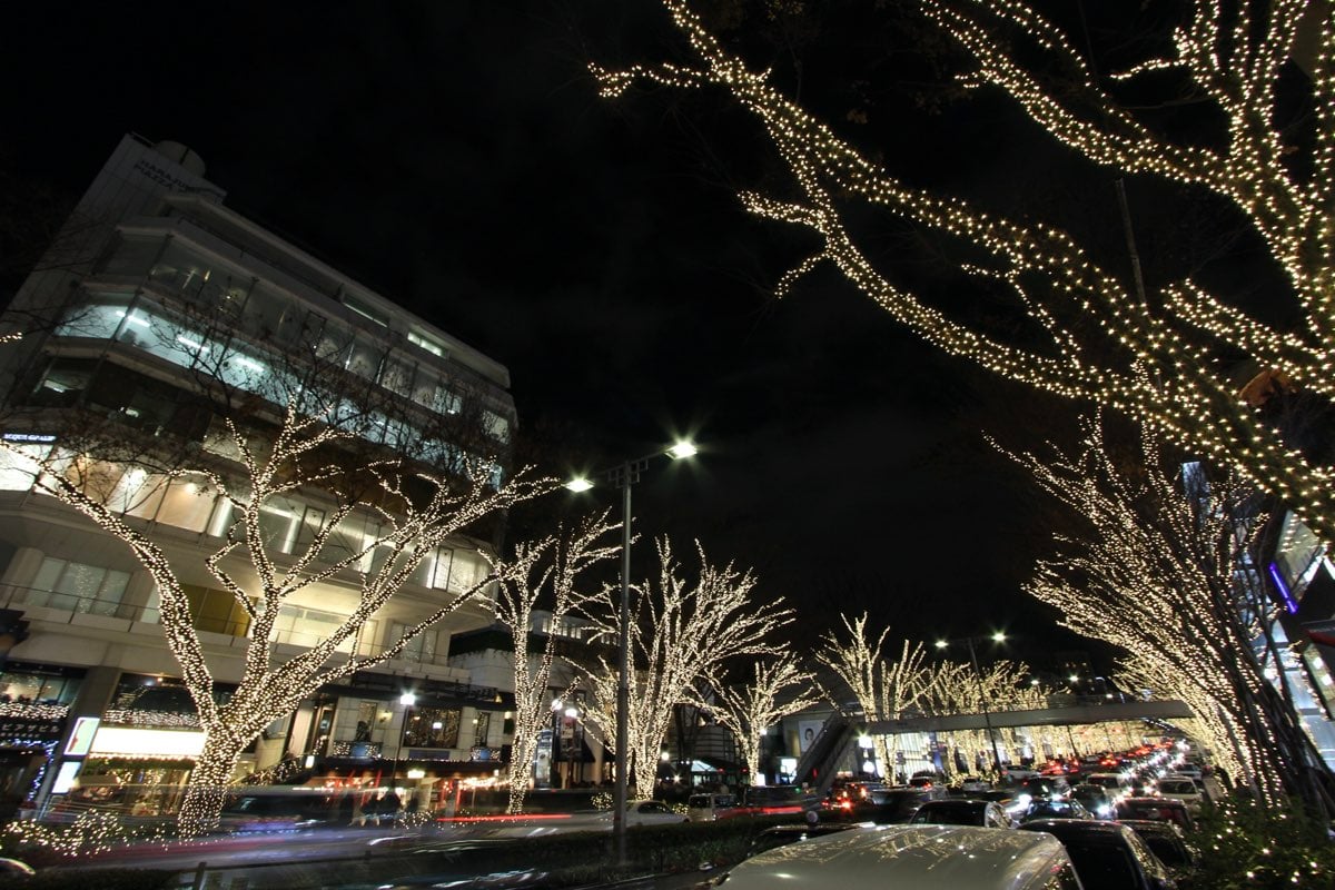 12月の約1ヶ月間、1.1kmに渡るけやき並木を煌びやかに彩る表参道のイルミネーション。原宿駅前の神宮橋から表参道交差点まで、まっすぐ伸びるダイナミックで豪華なイルミネーションは、この時期の表参道だけで見られる特別な光景だ。