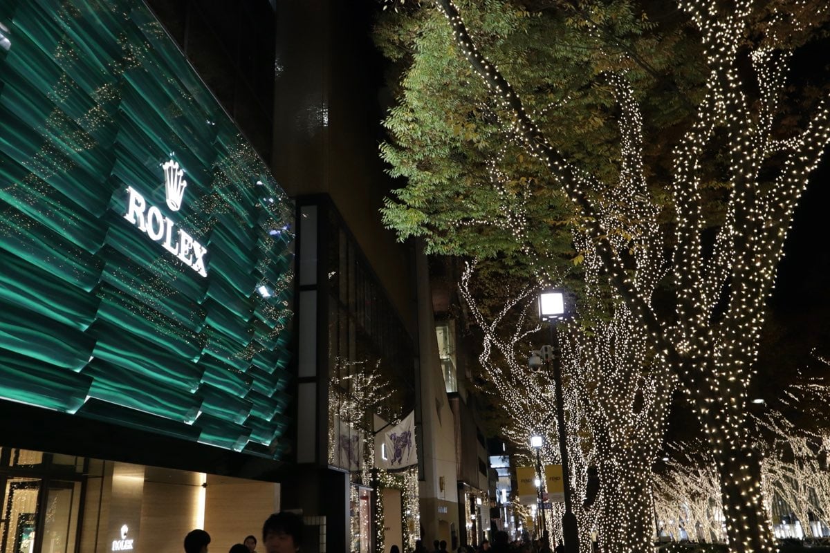 編集部撮影(2024年)今年はROLEXができて、ファサードとの反射が良い感じ