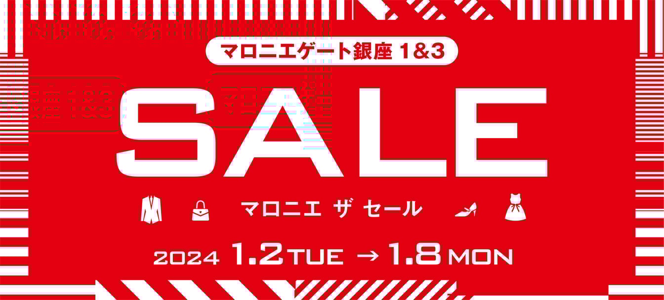 マロニエゲート銀座1は、福袋の販売に加えて「マロニエ ザ セール」を開催。マロニエゲート銀座1では「ディーゼル(DIESEL)」や「ジャーナル スタンダード レサージュ(JOURNAL STANDARD L'ESSAGE)」「ケユカ(KEYUCA)」など、マロニエゲート銀座3では「バナナ・リパブリック(BANANA REPUBLIC)」が揃います。