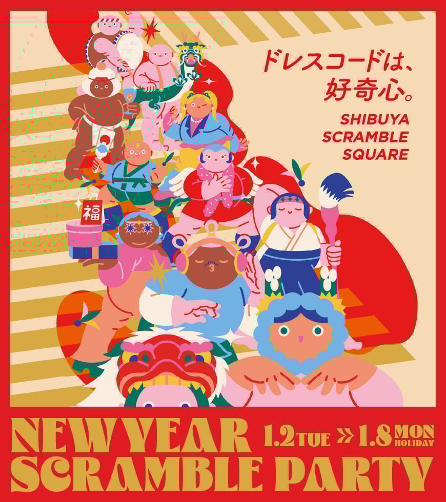 渋谷スクランブルスクエアでは、1月2日から8日にわたり「カルバン・クライン(CALVIN KLEIN)」や「ケンゾー(KENZO)」「フルラ(FURLA)」などが新春セールを開催。7階イベントスペースでは毎年恒例となっている振る舞い酒イベントが催されるほか、DJを招いた2日間にわたるニューイヤーパーティーなども予定されています。