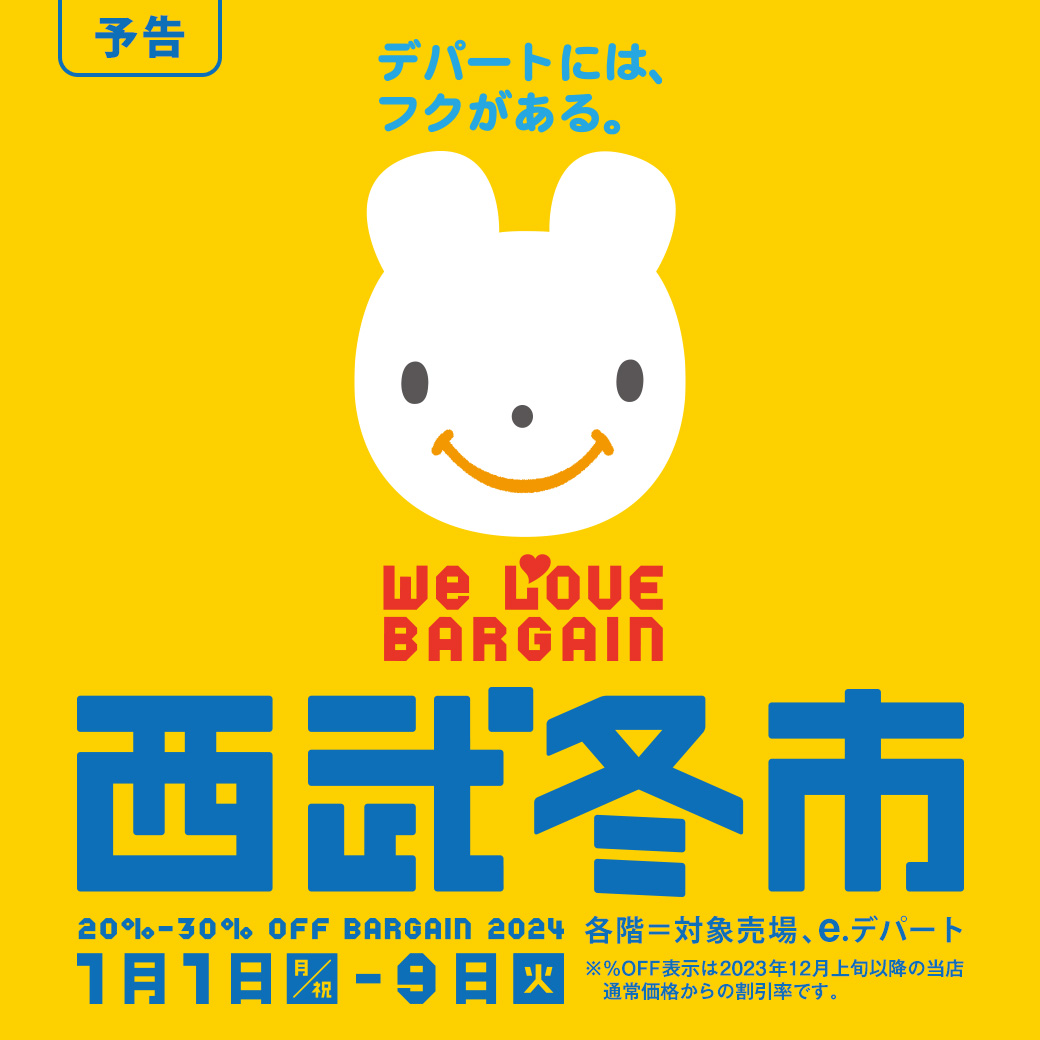 そごう・西武は今年も元日から営業を開始。10時から初売りを実施します。クリアランスセールではブランドアイテムなどを20〜30%オフで販売。また、「琉球風水志シウマが指南する2024年最強開運占い」など、新年にぴったりなコンテンツも提供します。