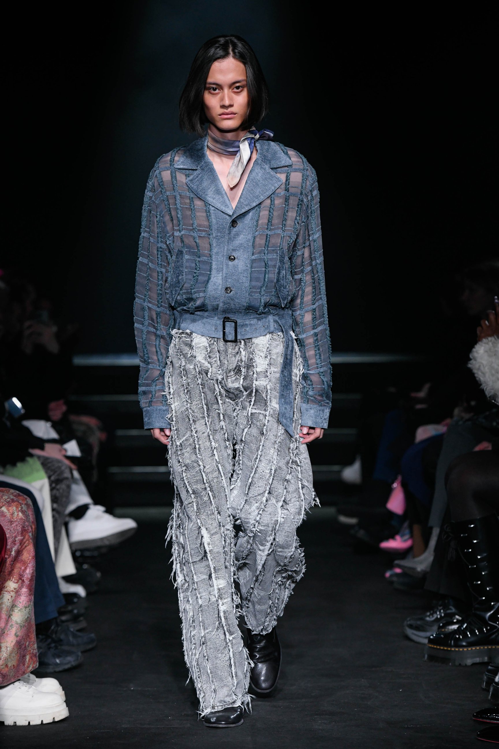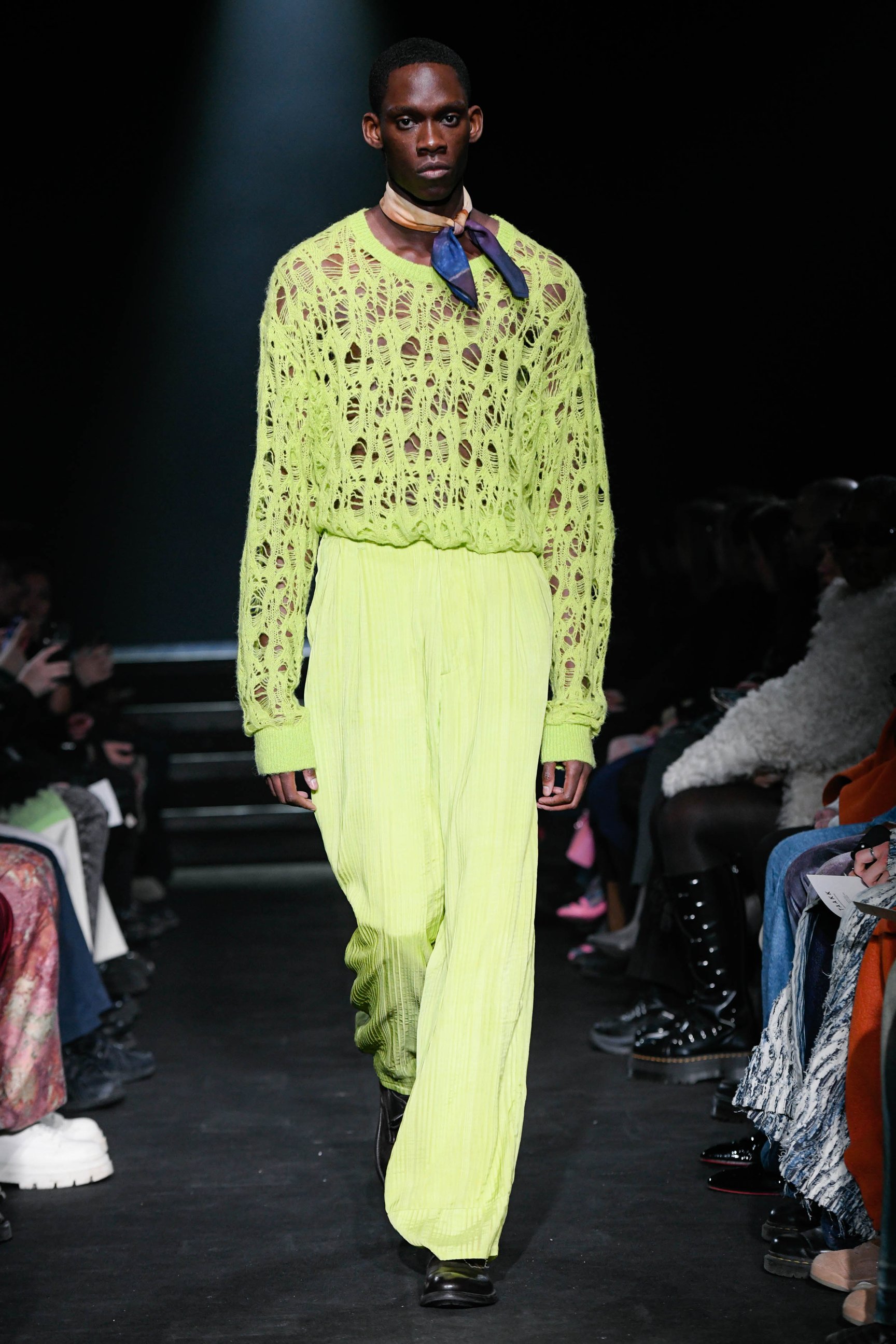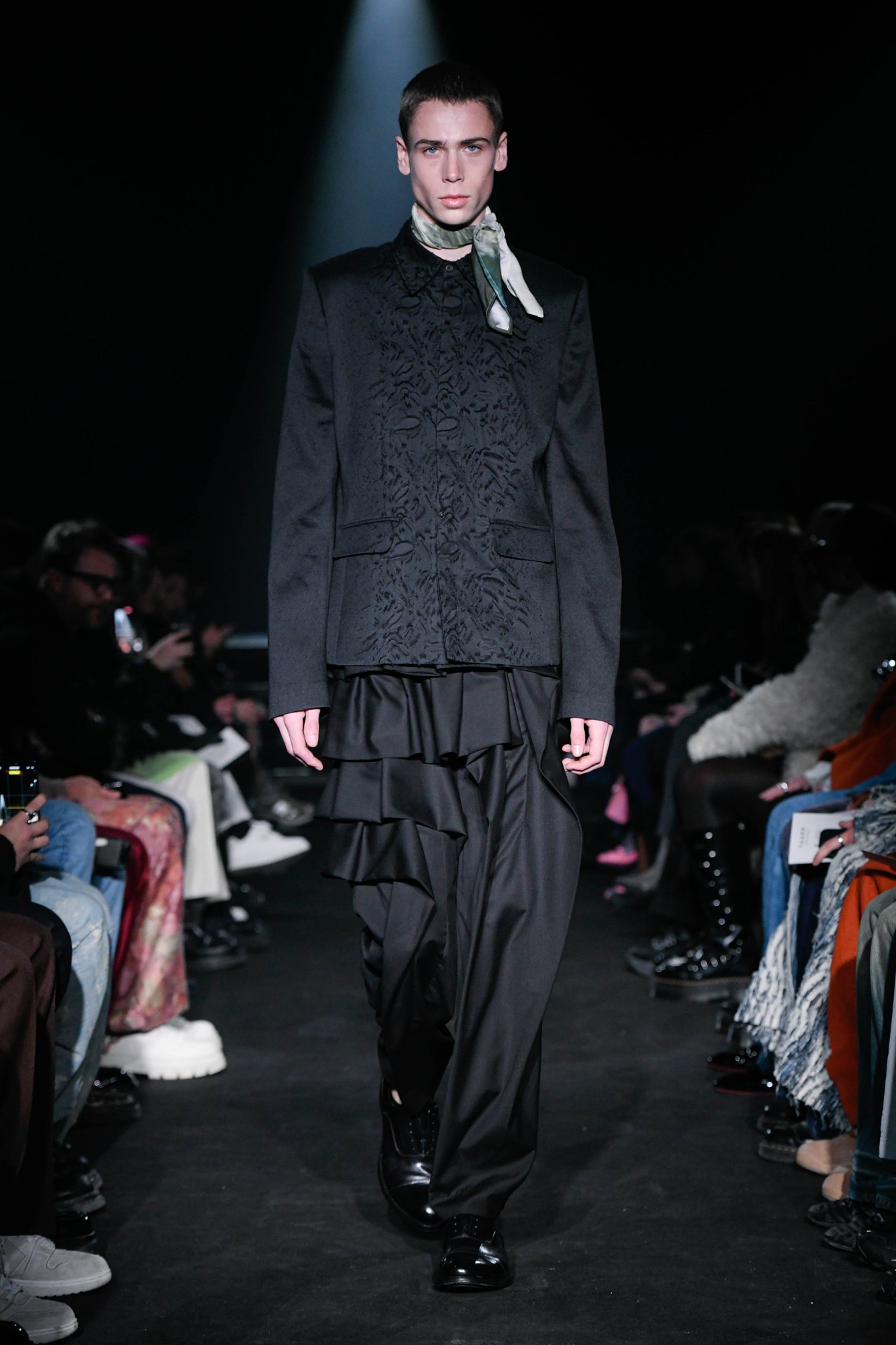 ショー終盤はオールブラックのスタイリング(スカーフを除く)を連打し、計30ルックでショーを締めくくった。