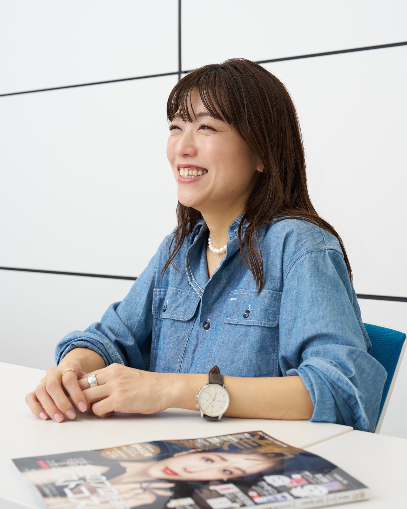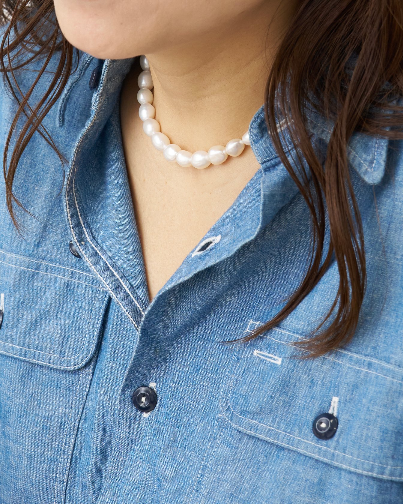 Tシャツといったカジュアルな装いでも、胸元が開いたブラウスなど少しきちんとした格好でも、どんなスタイルでもマッチします。顔周りに白があると、顔がパッと明るくなりますよね。歳を重ねてパールの威力を感じています。そのライターさんに、感謝の気持ちでいっぱいです(笑)。