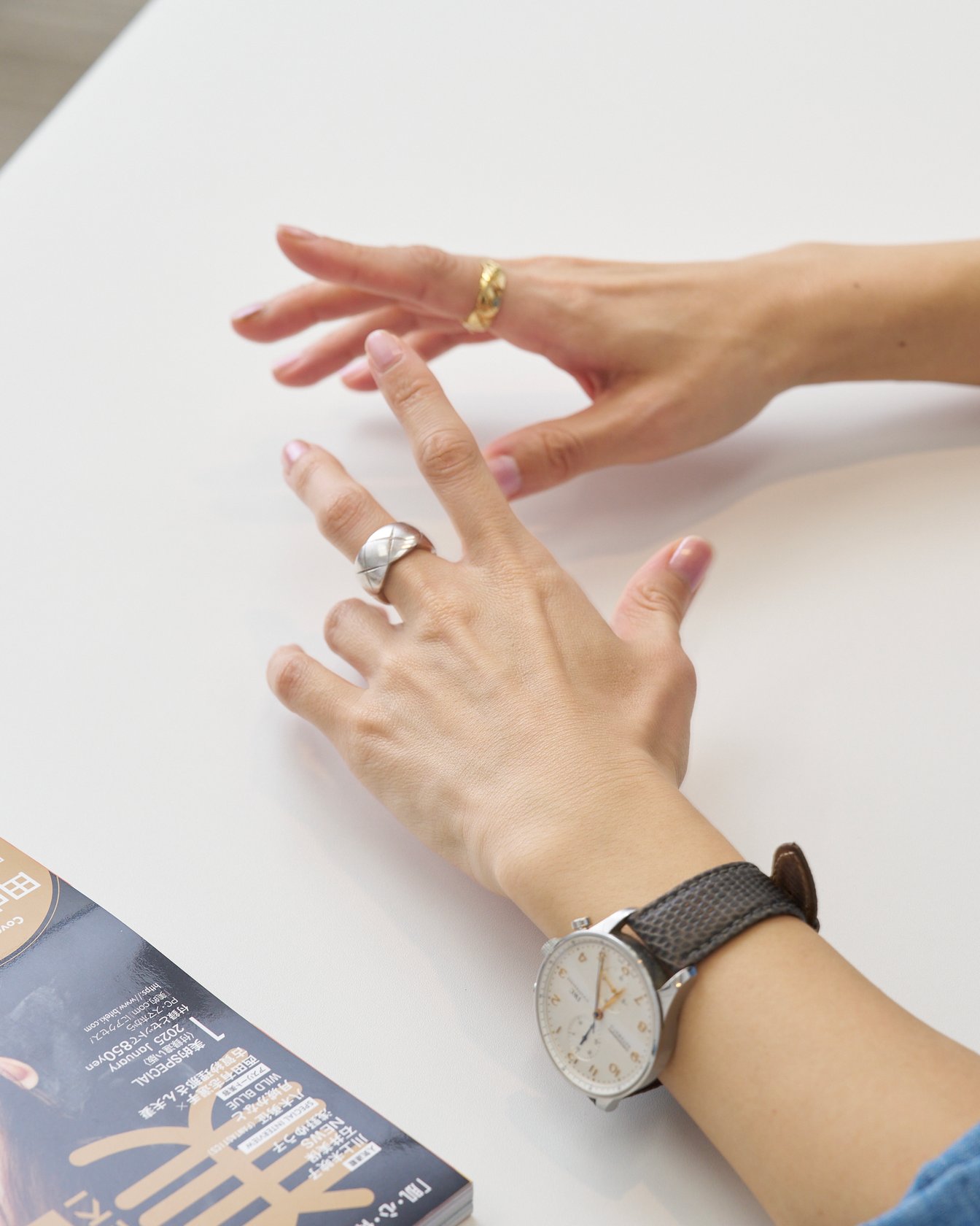 小林:そうなんです。ずっと欲しいと思っていたんですが、何かきっかけがあれば買いたいと。それで編集長になった時に自分へのプレゼント&喝としてホワイトゴールドを購入しました。ホワイトゴールドのほかに、ベージュゴールド、イエローゴールドがあって、お金があったら3色全部欲しいぐらいだったんですけど(笑)。この2年、ずっと付けているのですが、広告ヴィジュアルなどで重ね付けしているのを見るたびに、可愛いなあ〜、欲しいなあって。それで今年、特に何か特別なことがあった訳ではないのですが、度重なる値上がりのニュースを聞いて、「今しかない」と思ってイエローゴールドを買い足しました。