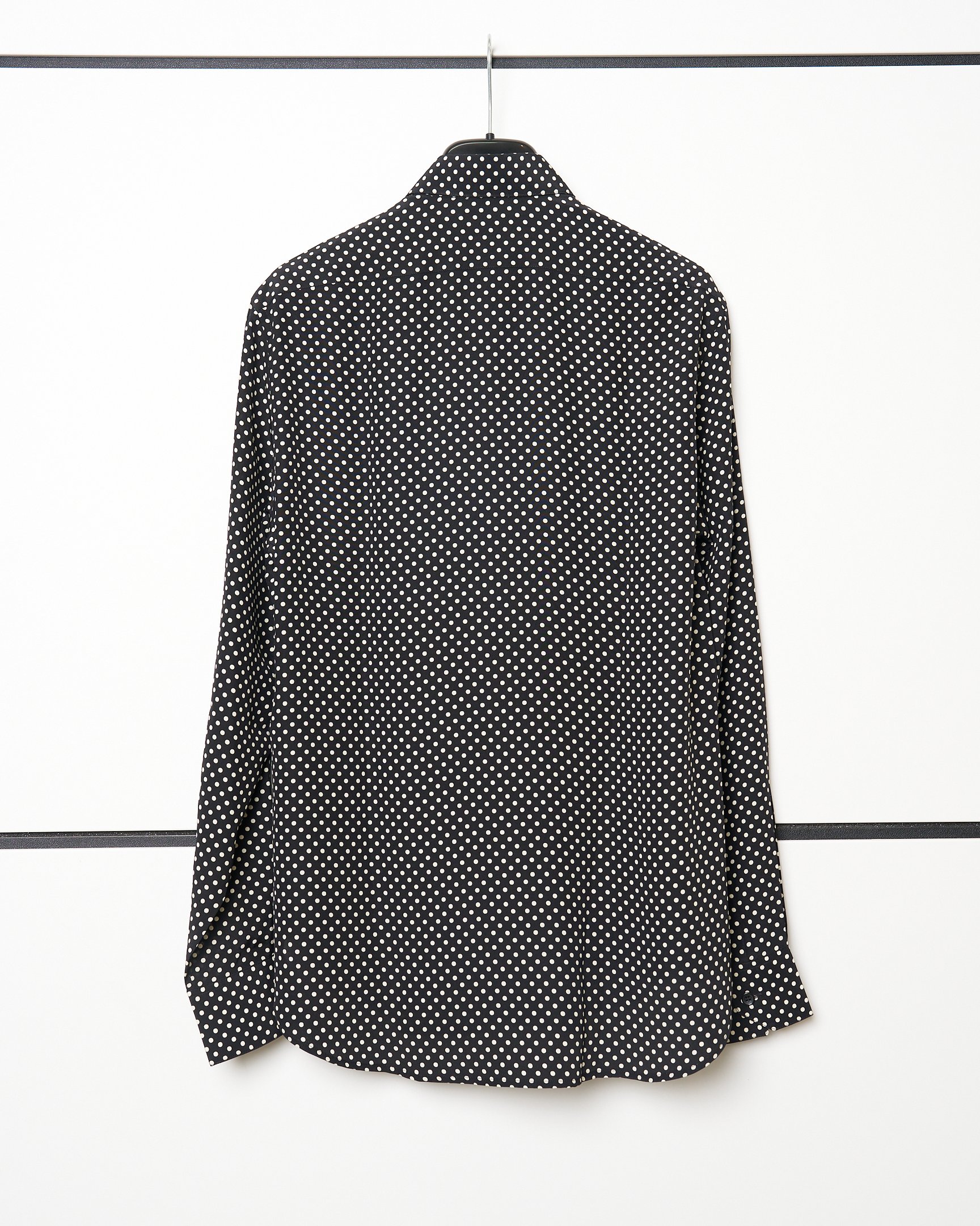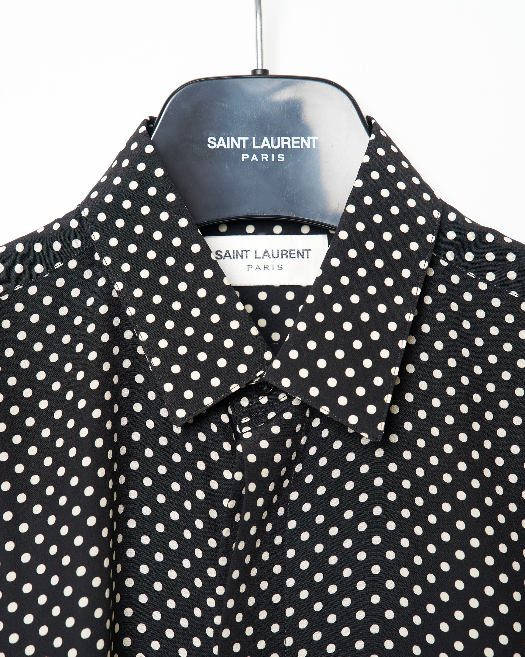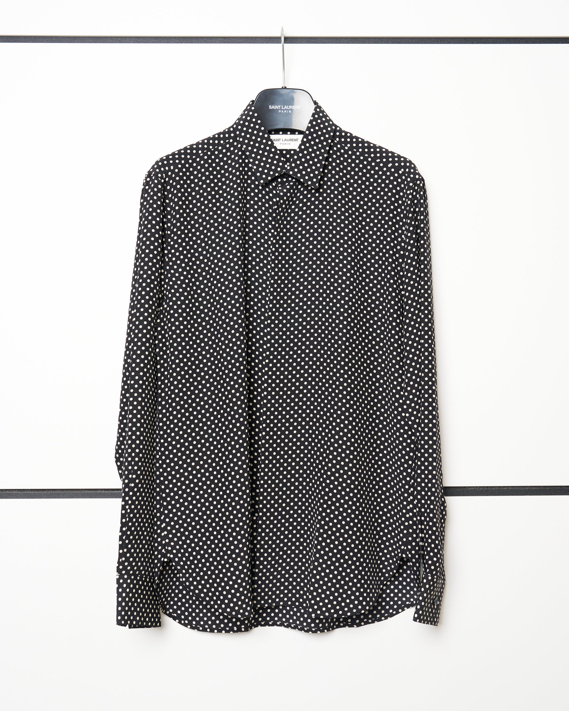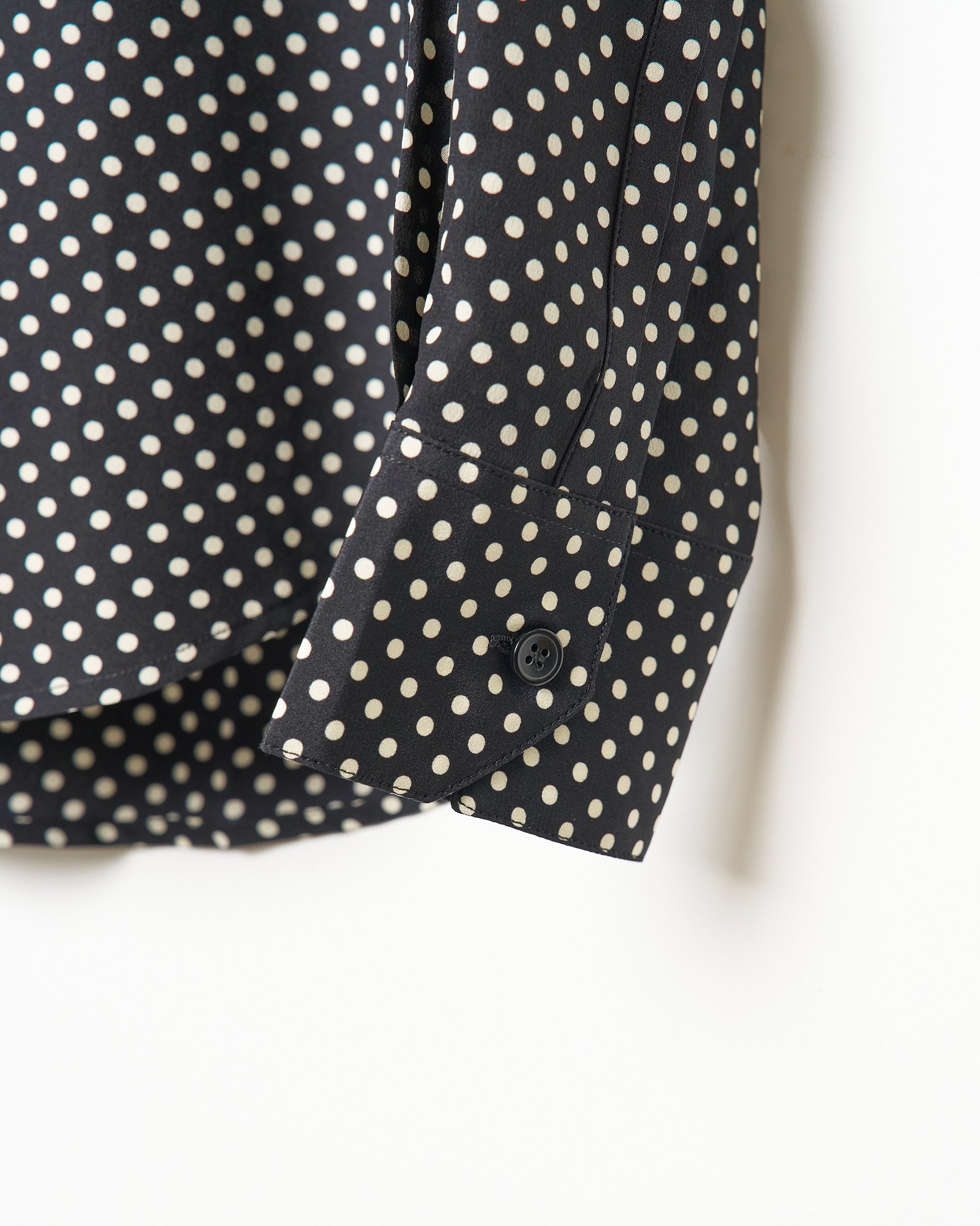 小林:「サンローラン(SAINT LAURENT)」ですが、実はこれもメンズなんです。サンローランのメンズは基本、細身ですし、これはSサイズで男性がピタッと着るとかっこいいですよね。先ほどのコム デ ギャルソン オムでの成功体験があるから、「ああ私、メンズのSが好きなんだな」(笑)と。シルエットもドットも可愛いくて購入しました。