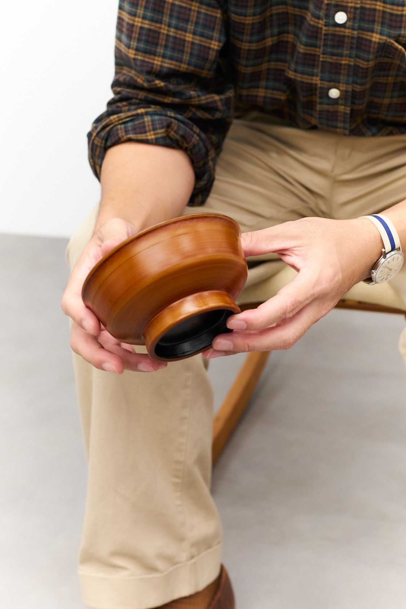 仁田:料理研究家で漆わんをふだん使いしている方を見て素敵だなと思って、自分に合うものを探すようになりました。僕の場合は寒くなると朝食に具だくさんの豚汁を作るので、たっぷり入る大きめのサイズで、手が熱くならない高台仕様、そして口当たりの良いものをピンポイントで探していたところ、こちらを見つけて。10月に京都の器の専門店で購入しました。