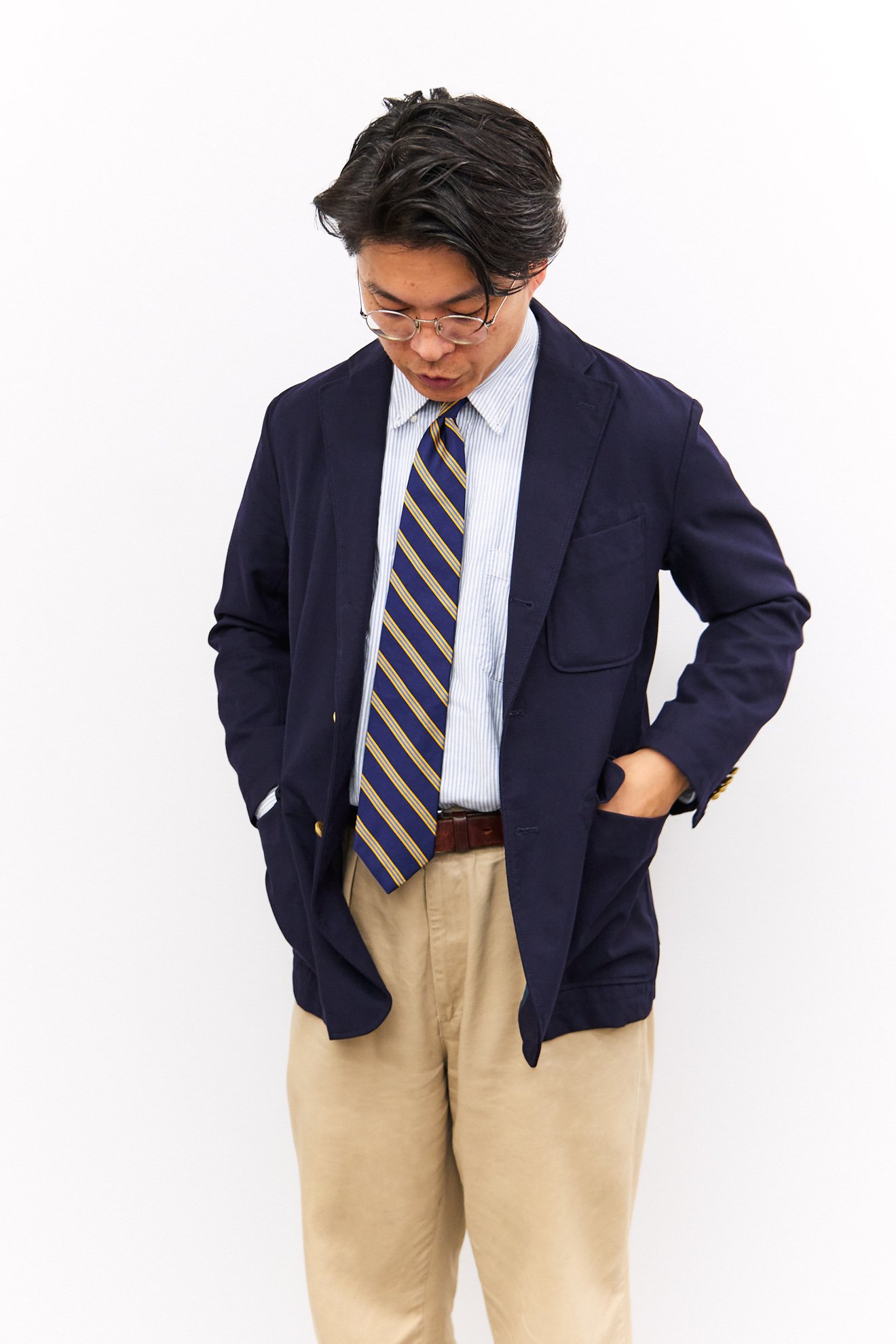 仁田:つくりがいいし、飽きないからです。秋冬のものは定番のベイカージャケットで、このモデルはアメリカの警察や消防署の制服に採用される「メトカフ ブラザーズ(Metcalf Brothers)」社製のユニフォームサージ(ウールサージ)を使用しているんです。動きやすいし、丈夫だし。これが紺ブレになったら最高だなと思って。