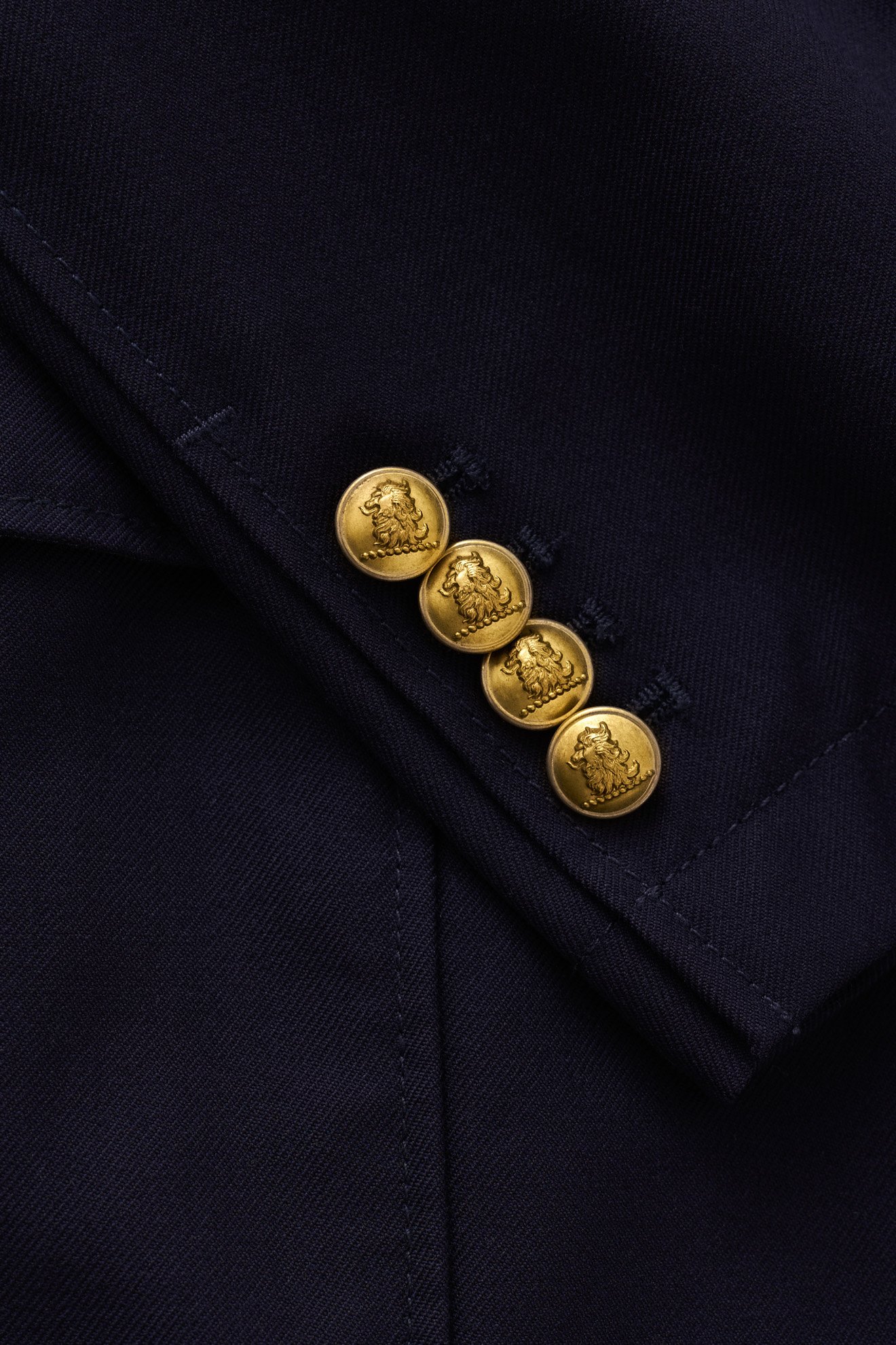 仁田:王冠を被ったライオンのボタンを冬用のジャケットに付けて、ユニコーンの絵柄のものを夏用のジャケットに取り付けました。職人の手で作られていて、この緻密な彫りは日本でも限られた職人のみができる技術だそうで。真ちゅうなので使っていくうちに経年変化が楽しめる部分もいいんです。