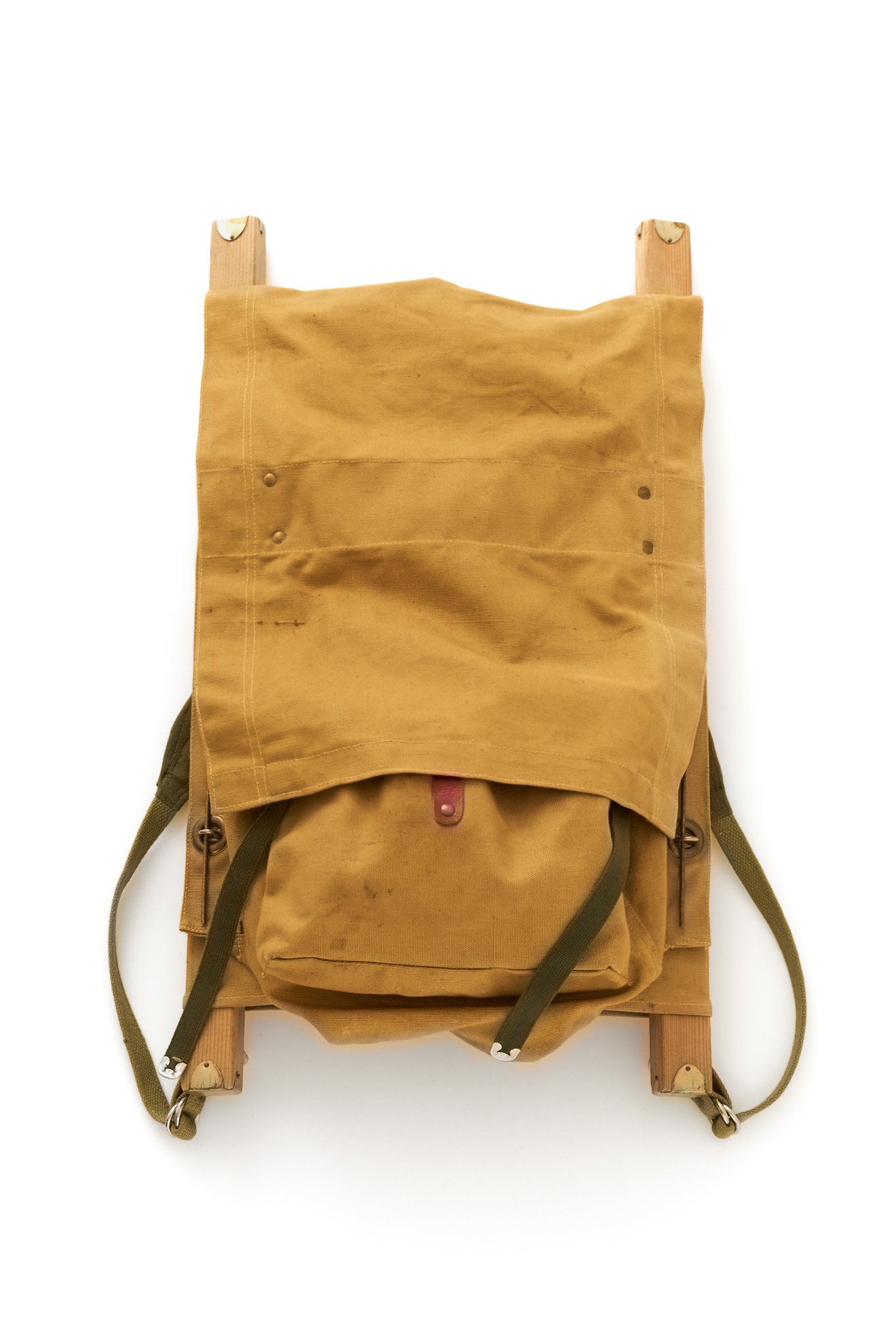 仁田:現代のバックパックの原型と言われるもので、昔のボーイスカウトやアウトドアのシーンで使われていたそうです。それ以前は背負子で荷物をくくりつけていたので、その名残で木製フレームがついています。付属の鉄の棒はキャンプで薪をいじるときに使用できるもので機能性もあって。こちらは1940〜50年代に作られたものです。
