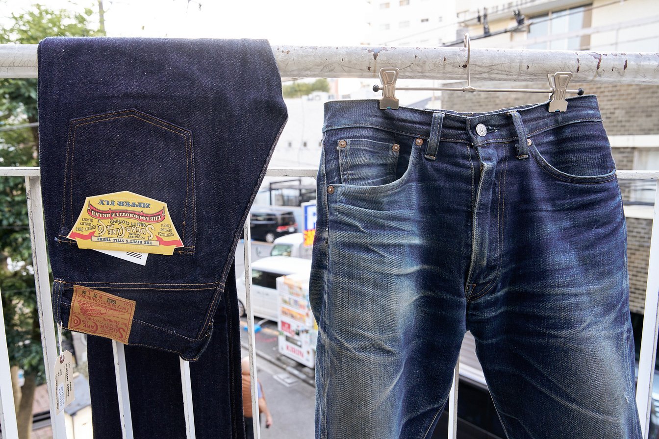 佐藤:とにかく、ジャストサイズのリジットデニムを選んで3ヶ月は穿き続けて洗わないこと。硬い状態で穿いてこそ、その人だけのシワができるから我慢だ。もし臭うようだったら、ファブリーズを使っても全然OK。洗う目安は、ヒゲ落ちが出始めたら。干すときは、日焼けしないように裏返すこと。俺の場合、裏返し状態だったら太陽にも当てちゃってる。今は、リジットデニムを洗ったら縮むことを知らない人が多いから、ウチではワンウォッシュしたものを用意して、それを試着してもらっているんだ。ワンウォッシュでジャストなサイズのリジッドデニムを買えば間違いないぜ!