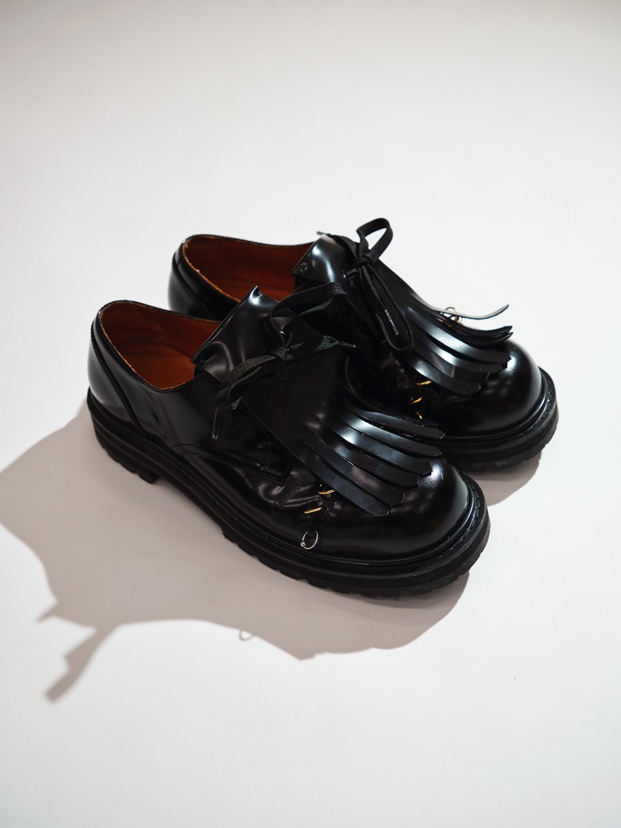 Taiki:ちょうど先ほどのセットアップに合わせて着用することが多かったですね。僕の中ではこのシューズも合わせてワンセットっていう気持ちでいました。フォーマルなスタイルの中に少し遊びが欲しいなという時に履きがちです。メタルのパーツがピアスのようなデザインなのがいい塩梅だなと。
