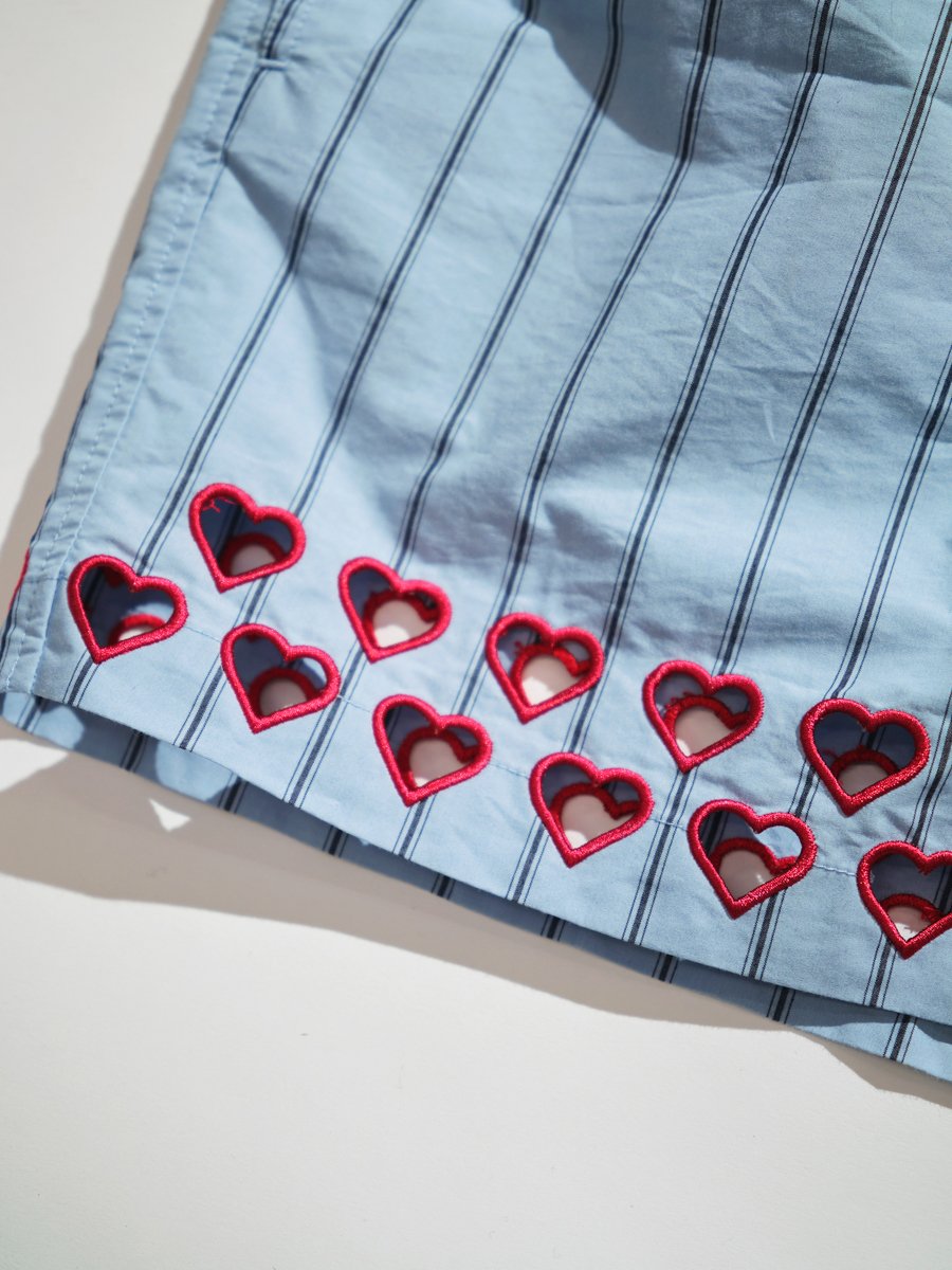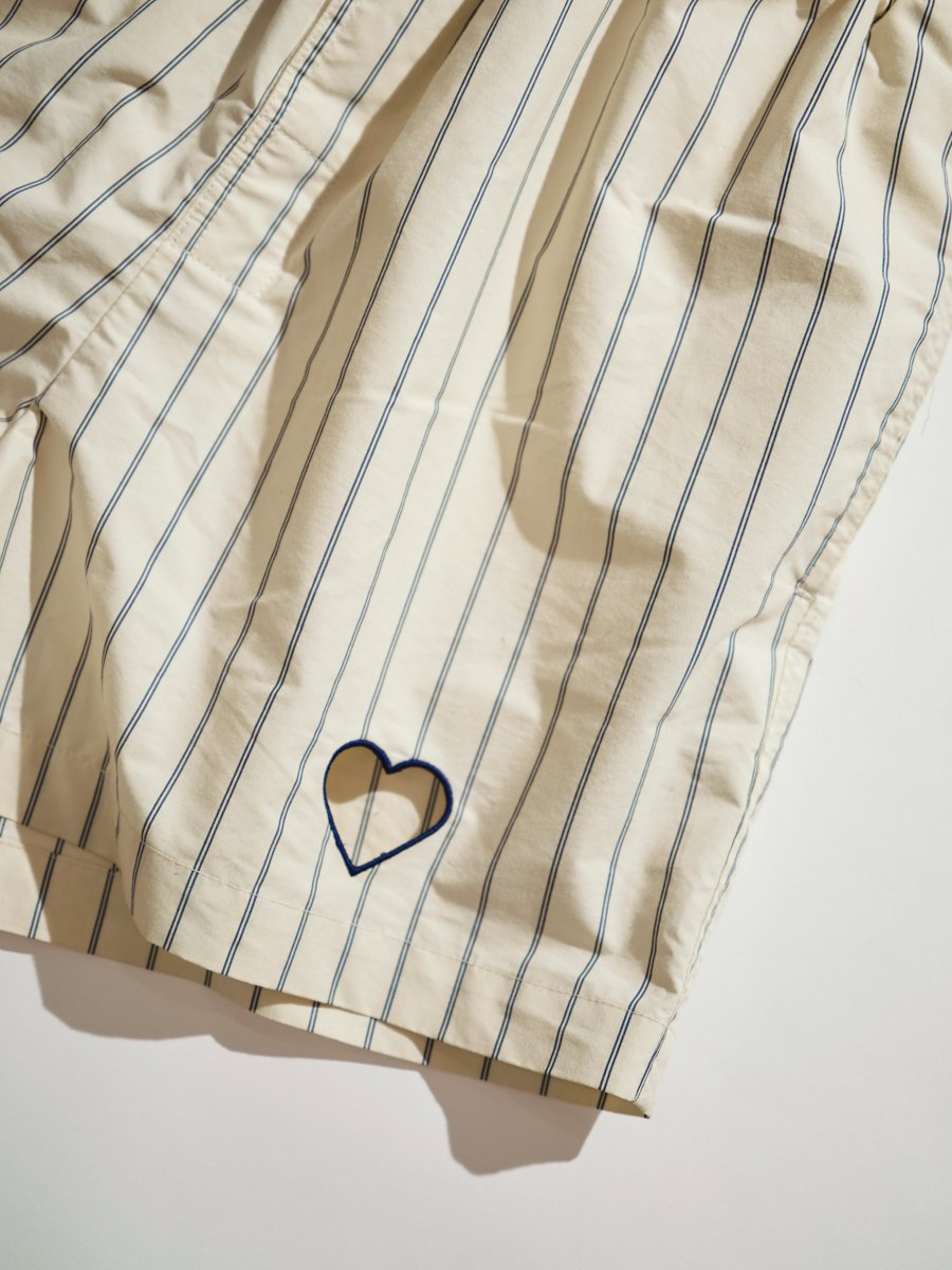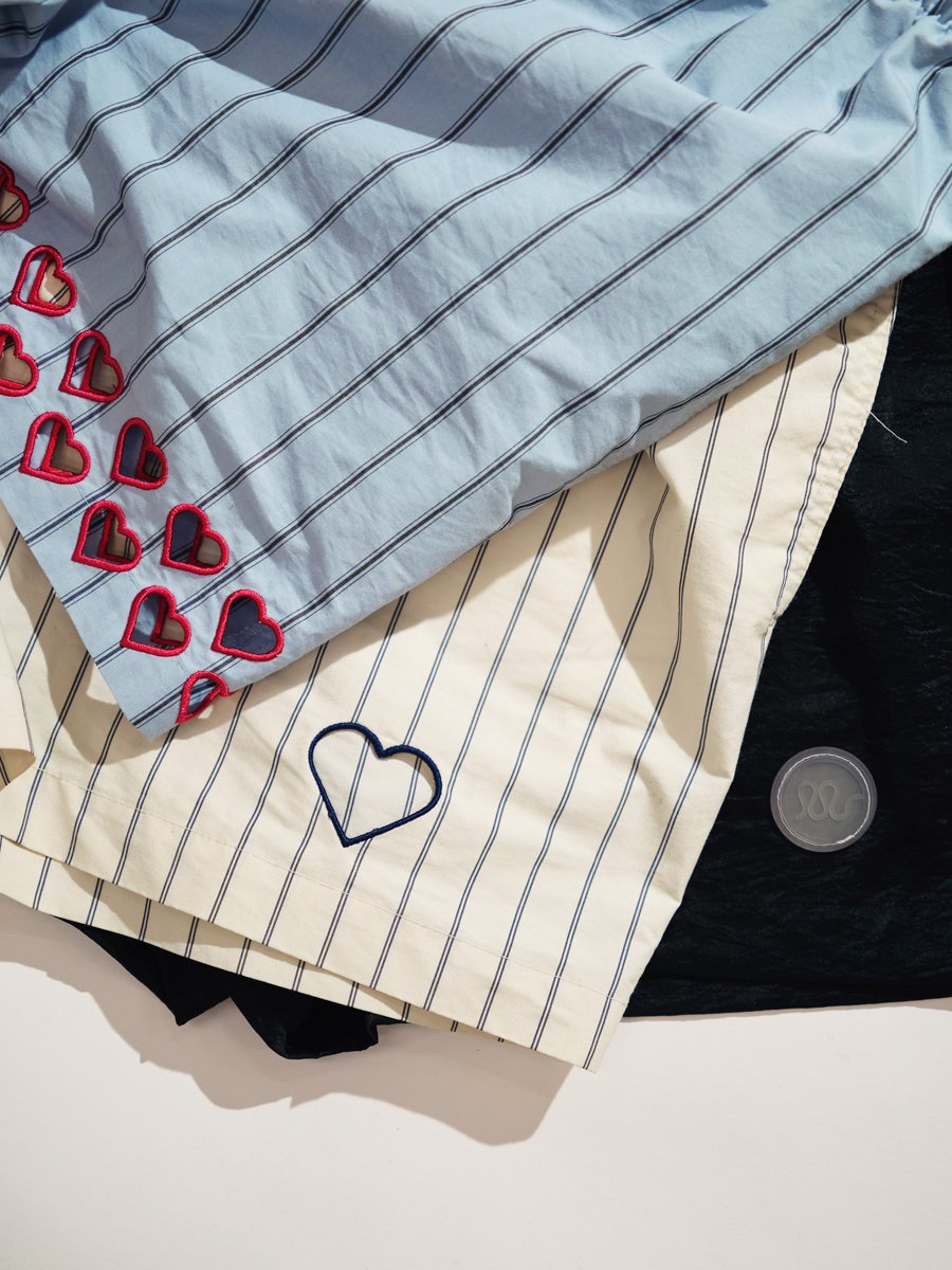 Taiki:アートディレクターの正田啓介さんが立ち上げたブランドで、センスが素敵。ハート柄もやりすぎず、刺しゅうだから可愛すぎないし、やらしくないといいますか。裾を裏返すとメッセージの刺しゅうが入っているとか、ギミックがていねいなのもおしゃれ。最初はプレゼントでいただいて、はいてみたらめちゃくちゃ着やすくて、どハマりしちゃいましたね。素材やデザインもいろんなパターンがあるからひとつに選べなくて、気がついたらこんなにありました(笑)。