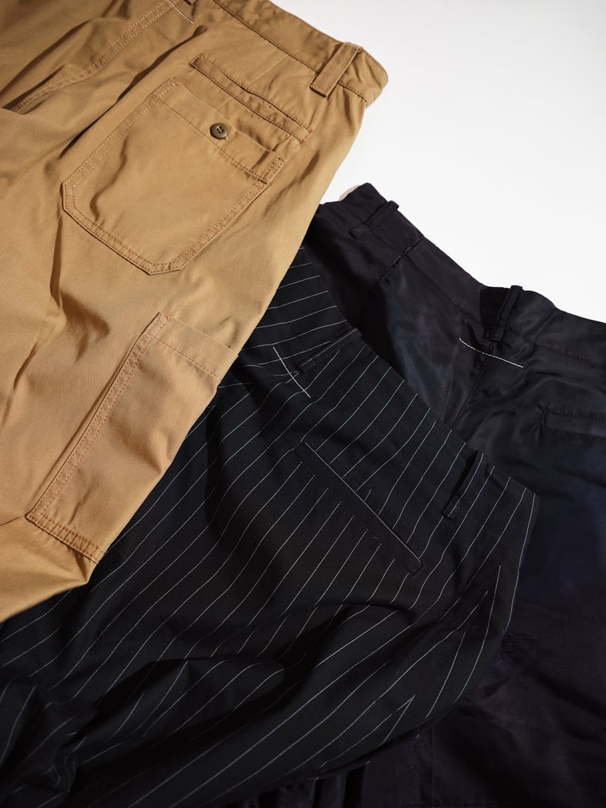 FASHIONSNAP(以下、F):まずは1点目、といっても複数あるのですが(笑)、このショートパンツの形が特にお気に入りということで、たくさんお持ちいただきました。
