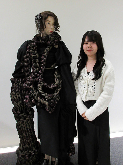 「専門学校生活は基礎を学ぶ1年次から楽しかった」と話す宮﨑さん。作品展などでも着実に実績を積み重ねた。1年次にデザイン画コンテストの「ワールド賞」に入賞したほか、同校の23年度卒業記念展ではファッションデザイン専攻科2年賞を受賞。「第24回YKKファスニングアワード」でも入賞を果たした。
