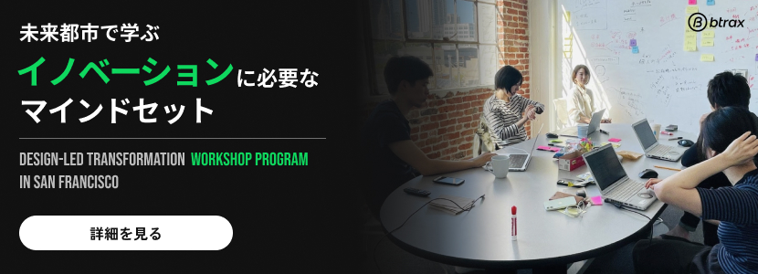 シリコンバレーの最前線でイノベーション支援を手がけるbtraxによる、経営幹部、事業責任者、本部長・部門長・部長などの部門責任者向けの実践的イノベーションプログラムを提要しています。サンフランシスコの地で、先端技術やトレンドに直に触れながら、デザイン思考やスタートアップマインドを体得できます。