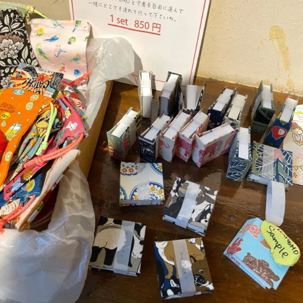 手のひらにすっぽり収まるサイズ感のメモ帳は、デスクに置いておくのも良し、ポケットに入れて持ち歩くのも良し。巾着とセットになっているから、お出かけ時もかわいく持ち歩けますね。