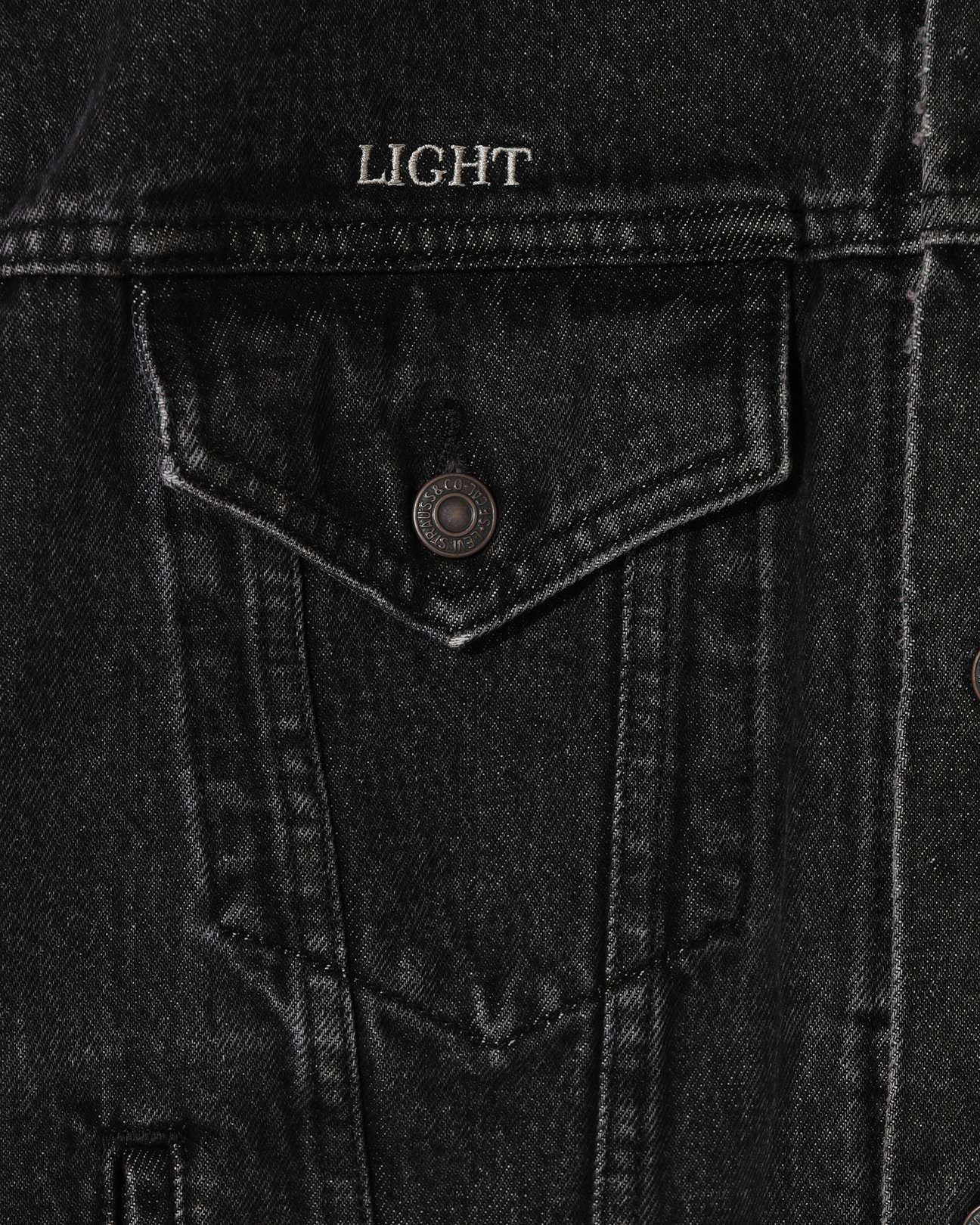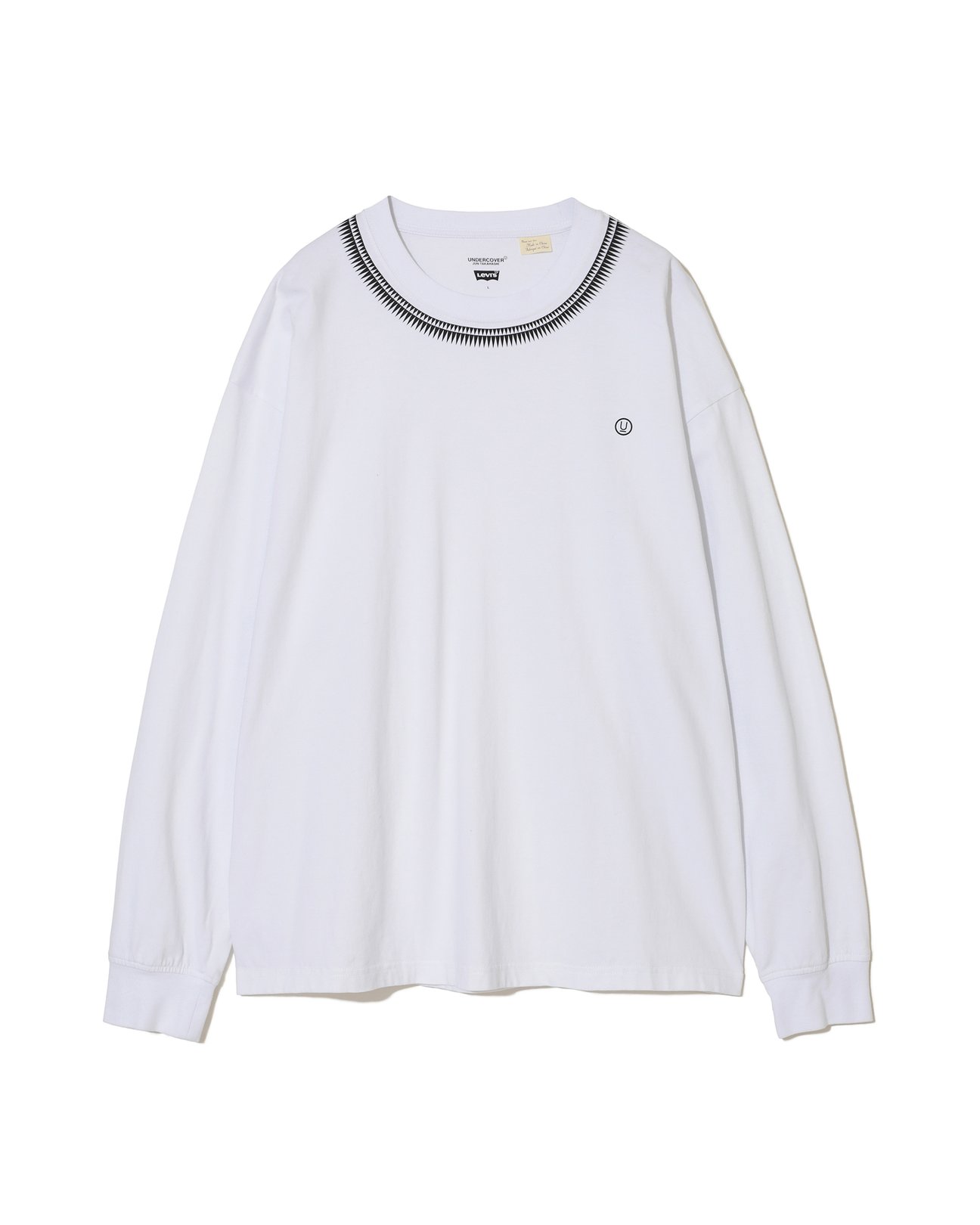 「Type l Trucke Jacket」(3万3000円)と「501® Jean」(2万6400円)には、アンダーカバーの2003年春夏コレクションからのアーカイヴグラフィックをデザイン。ジオメトリックなトライアングル柄の刺繍を施した。「Type lll Trucker Jacket」(3万3000円)と「Baggy Jean」(2万6400円)には、同コラボのために作られた新しいグラフィックを使用。釘のデザインをはじめ、「LIGHT」や「DARKNESS」の文字をあしらった。