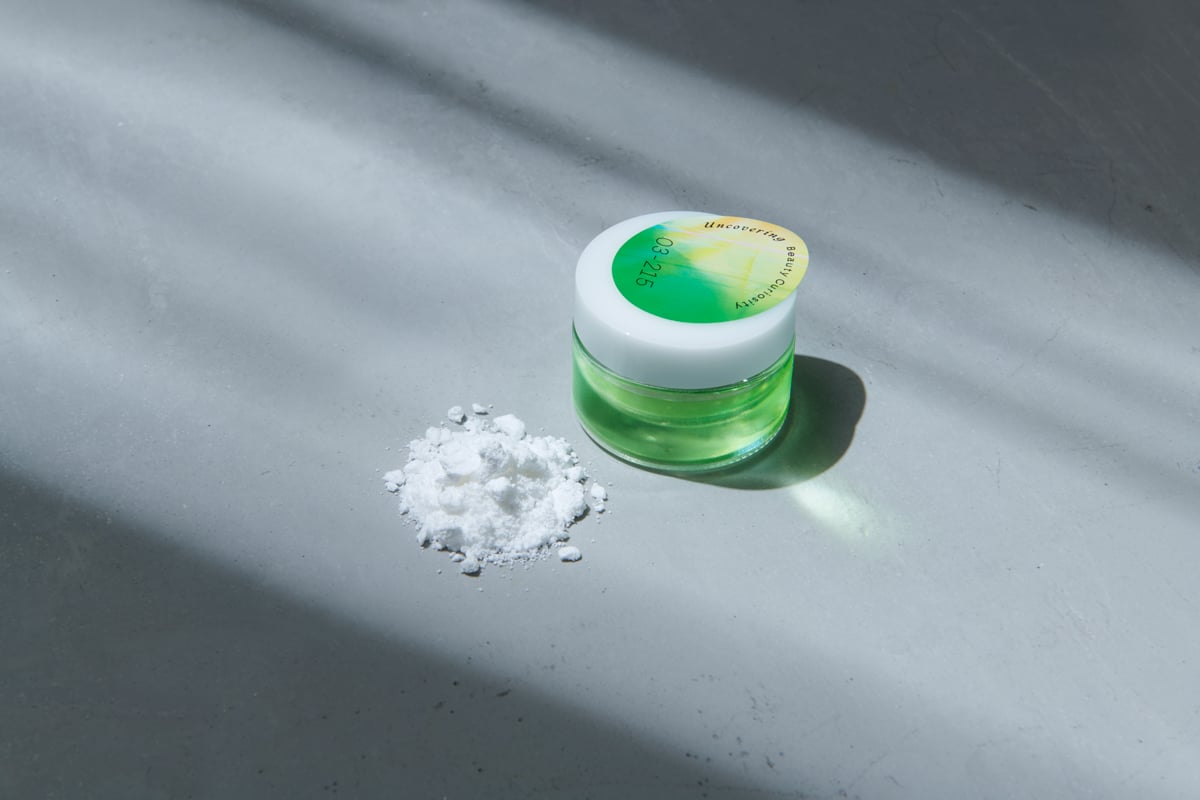 そしてfibona Labでは、スタートアップ企業の革新的なテクノロジーや生活者のユニークなアイデアを融合した商品開発で生まれた実験的な商品を取り扱う。オープン時は、セカンドスキン技術の特長である肌と一体化させる人工皮ふの技術を応用し、昨年発売した「スキンアクセサリー™︎」に加え、新たな商品として、パウダー状で肌に塗布するとクリームのようなテクスチャーに変化して肌になじむ香りのアイテム「香肌晶(かはだしょう)」を販売する。