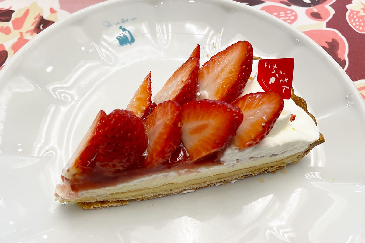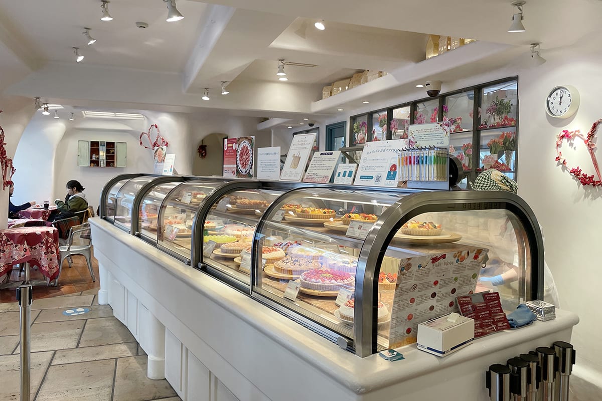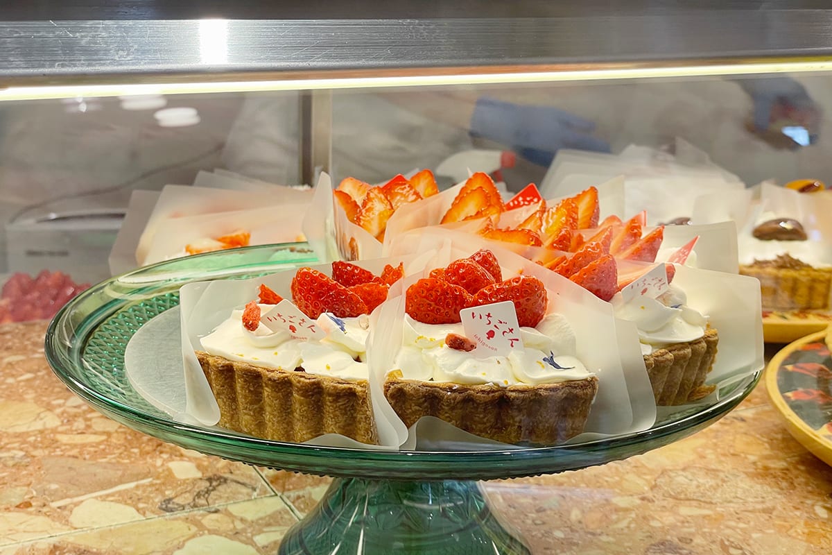 入店すると、目の前に広がるショーケースの中から早速、「佐賀県産“いちごさん”とダブルチーズのタルト」を発見!他のお客さんも皆こちらがお目当てのようで、開店直後にも関わらず、ケーキスタンドから続々と「いちごさん」タルトが運ばれていく。