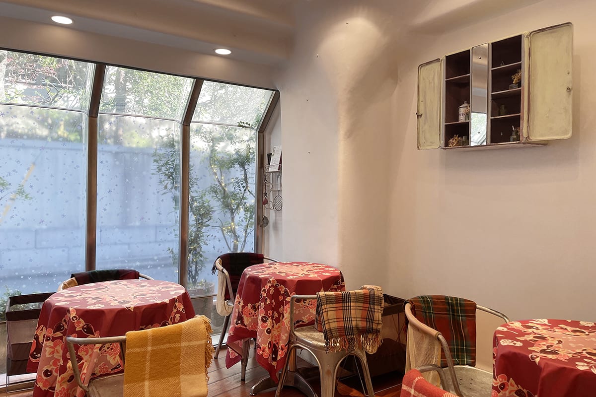 注文を済ませ、イートインスペースへ。「キル フェ ボン」は、フランス語で”なんていい陽気なんだろう!”という意味らしく、今日のお天気はまさしくその由来にぴったり。大きく縁取られた窓から冬晴れの陽光がたっぷり差し込んで、ピクニックしているみたいな気分。