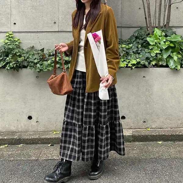 nana:「セカンドストリート」で見つけた、600円のチェックスカートもお気に入り。