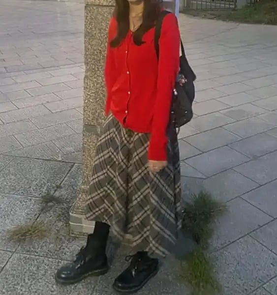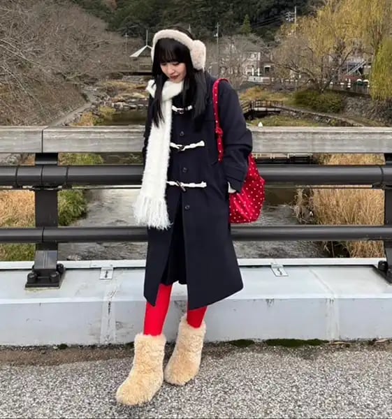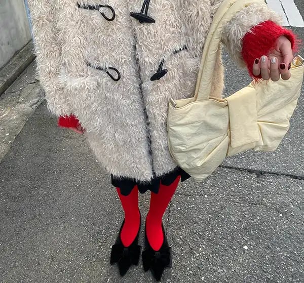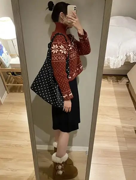 冬は小物を足した方がコーデが映えるから、赤い小物やドット柄、チェック柄がマイブームになっています。