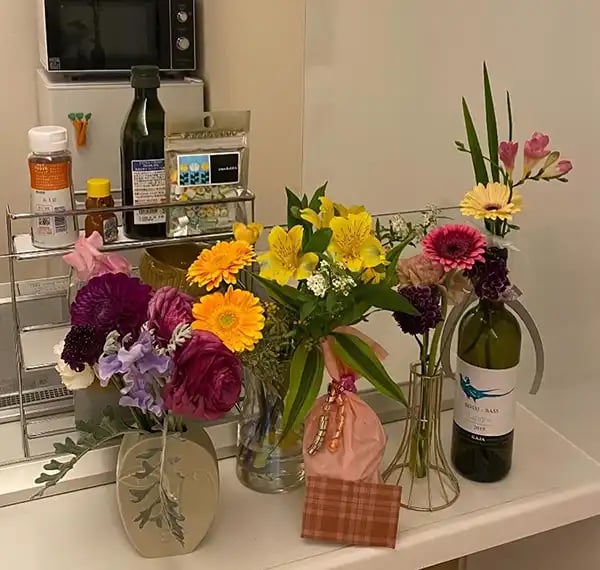 お花を部屋に置いて毎日の癒しにしたり、手作りのマグネットやポストカードを貼って冷蔵庫をかわいくしたりするなど、お部屋をアップデートすることが好きですね。