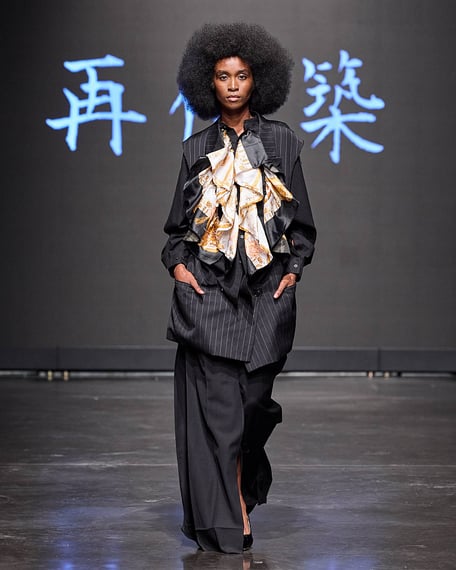 デザイナー4人とプロデューサー1人の計5人で手掛けており、平均年齢は23歳と若い。デザイナー兼代表の田尻永太さんが、服飾学生時代に古着リメイクの服を作っていたことがブランドを立ち上げるきっかけとなった。23年4月に再倖築として本格的にECや期間限定店でリメイク服の販売を始めた。「服を着ることで幸せになってほしい」との思いを込めて、ブランド名の真ん中の漢字を〝倖〟にしたという。ミセスグリーンアップルや藤井風さんなどのアーティストへ衣装提供をした実績もある。