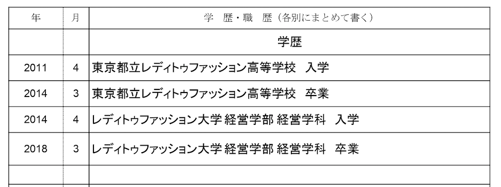 学歴の記入例