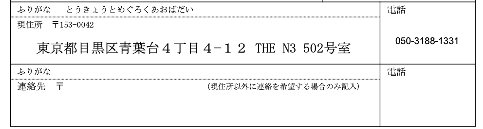 合否連絡を電話で行う場合があるので、確実につながる電話番号を記入します。この場合、携帯電話であってもマイナスイメージにはなりません。