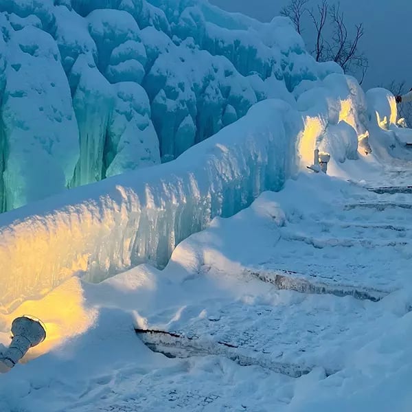 幻想的な世界を楽しむことができる祭典で、圧倒されてしまうような、大小さまざまな氷のオブジェが立ち並んでいるんです。