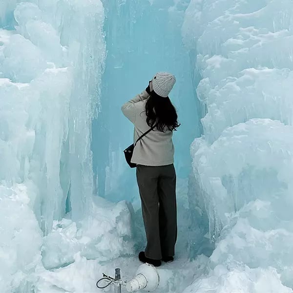 さまざまな大きさ・形の氷のオブジェが立ち並ぶ景色は、まさに“氷の美術館”のようです。